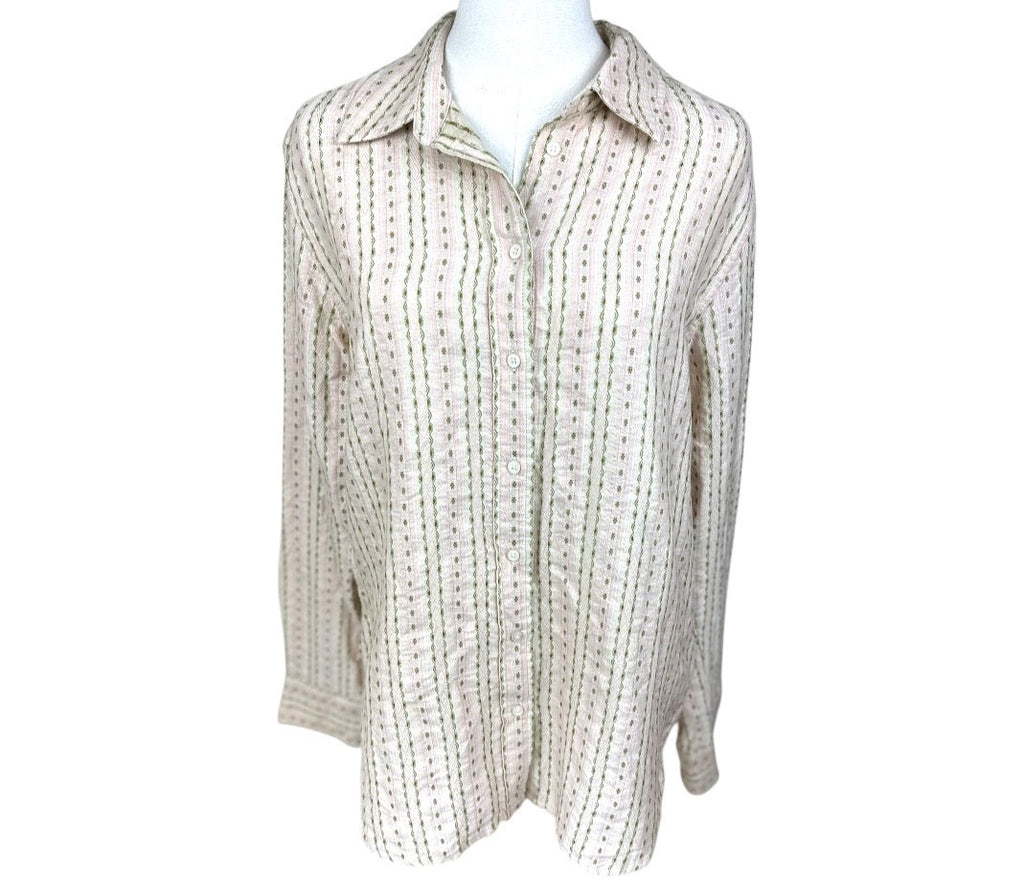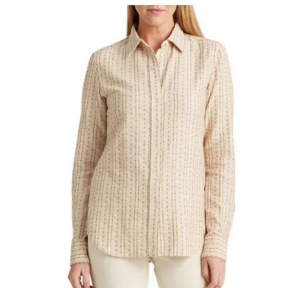 Lauren Ralph Lauren Beige Pink Womens Cotton Button Striped Preloved Shirt Size Large*