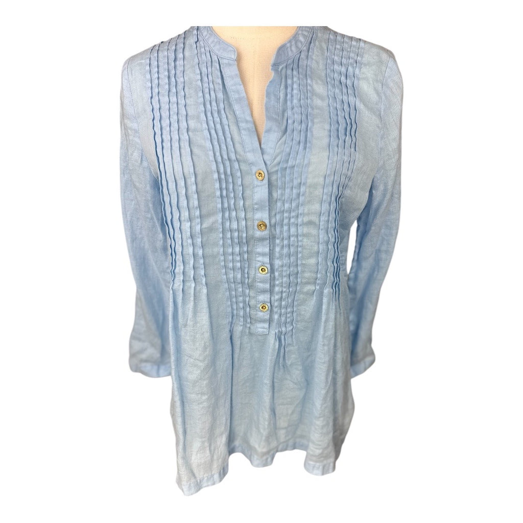 Lilly Pulitzer 100% Linen Womens Button Long Sleeve Shirt Blue XSmall*