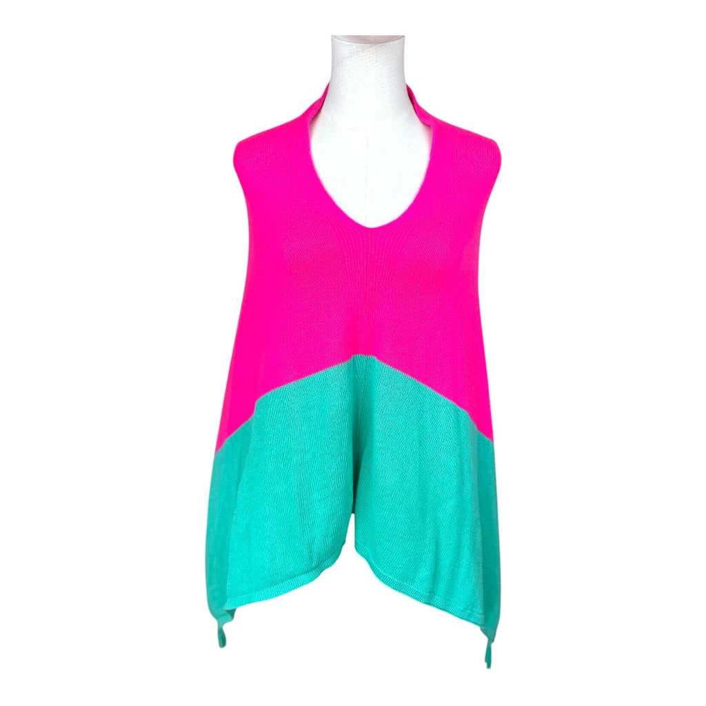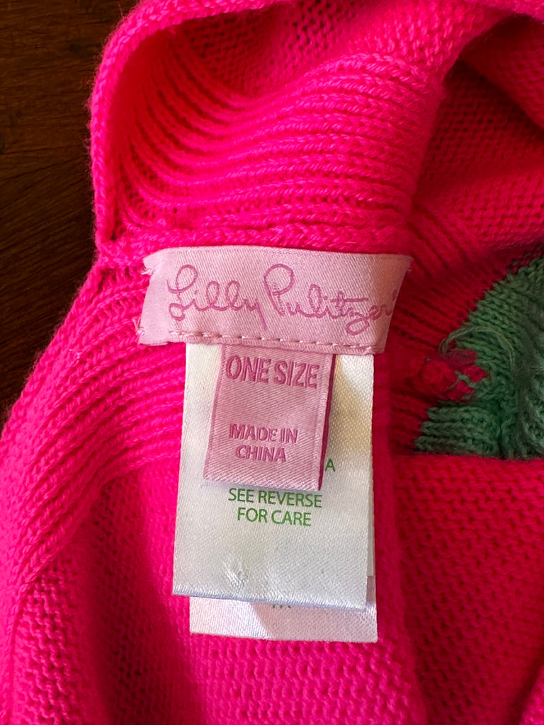 Lilly Pulitzer Kinnon Knit Wrap Tassels Pink & Green Poncho One Size New