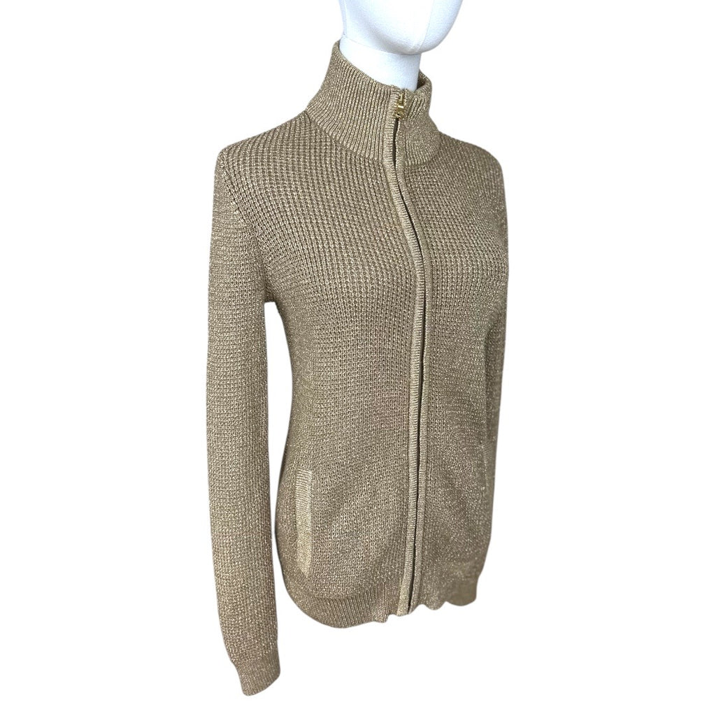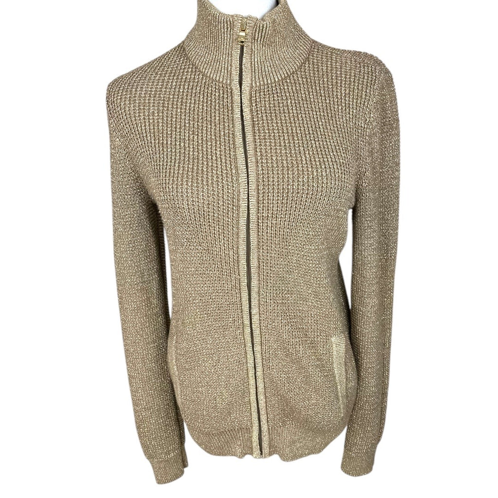 LRL Lauren Active Full Zip Gold Metalllic Mock Neck Sweater Size Medium*