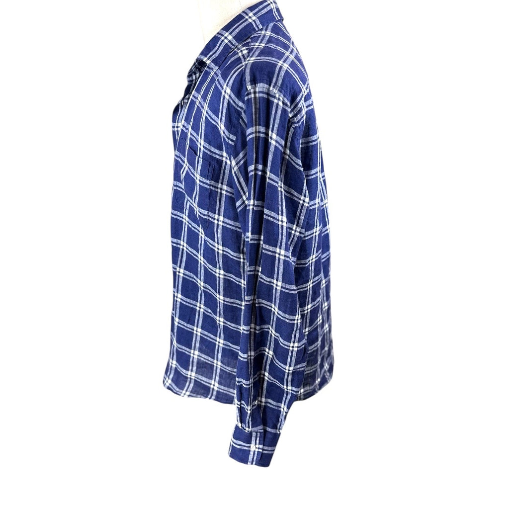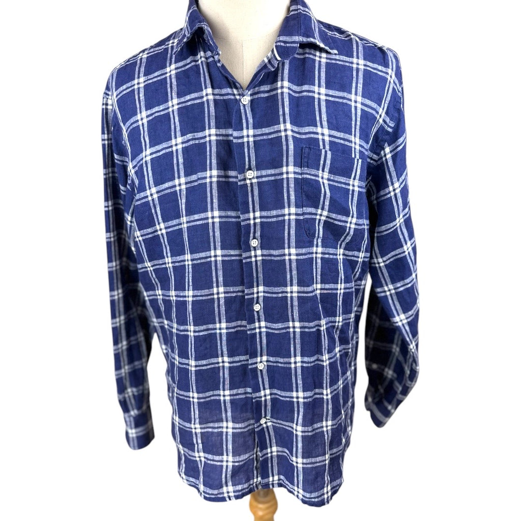 Peter Millar Activewear Blue Plaid Men Linen Shirt Preloved Size Large*
