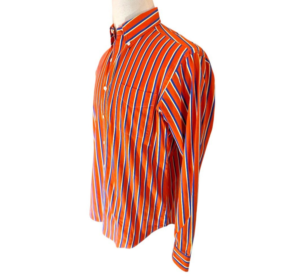 Ralph Lauren Classic Fit Orange Striped Mens Preloved Shirt Size Medium*