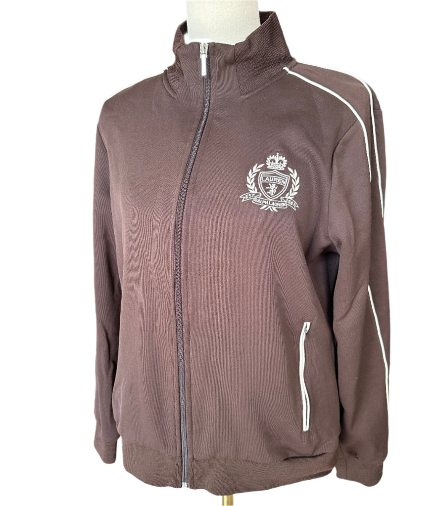 Ralph Lauren Active Womens Vintage Chocolate Brown Track Jacket Size Large*