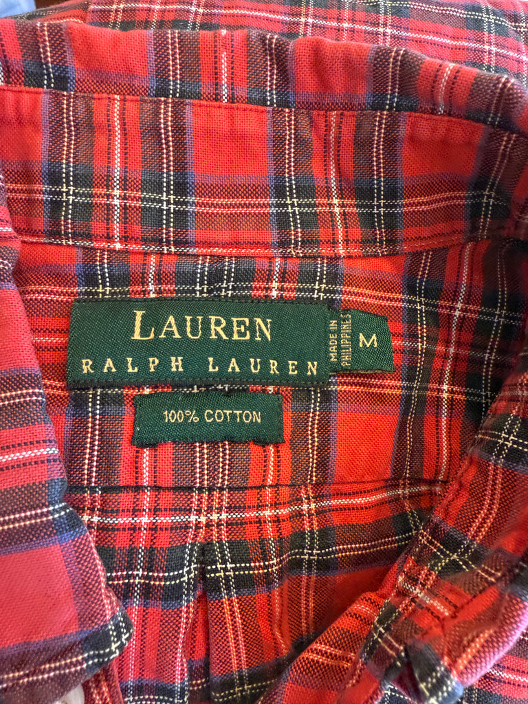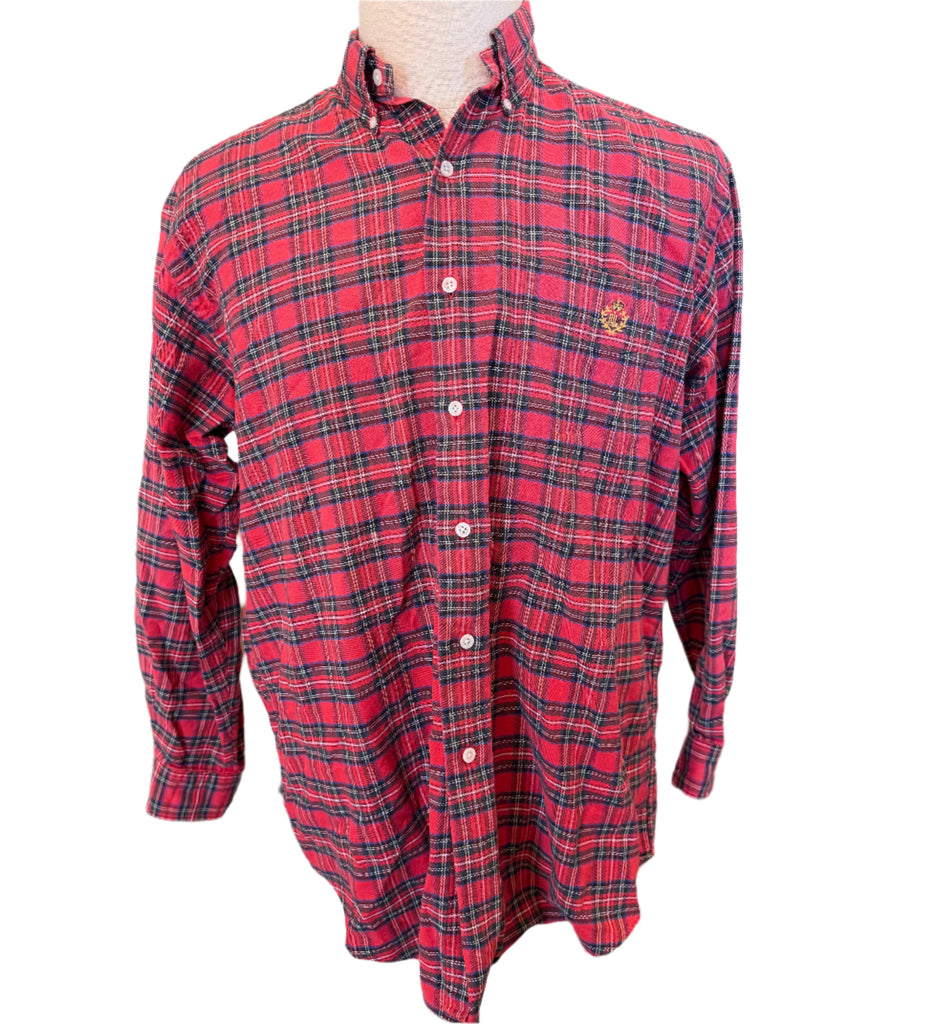 Ralph Lauren "Big Shirt' Holiday Plaid Cotton Mens Preloved Size Large*