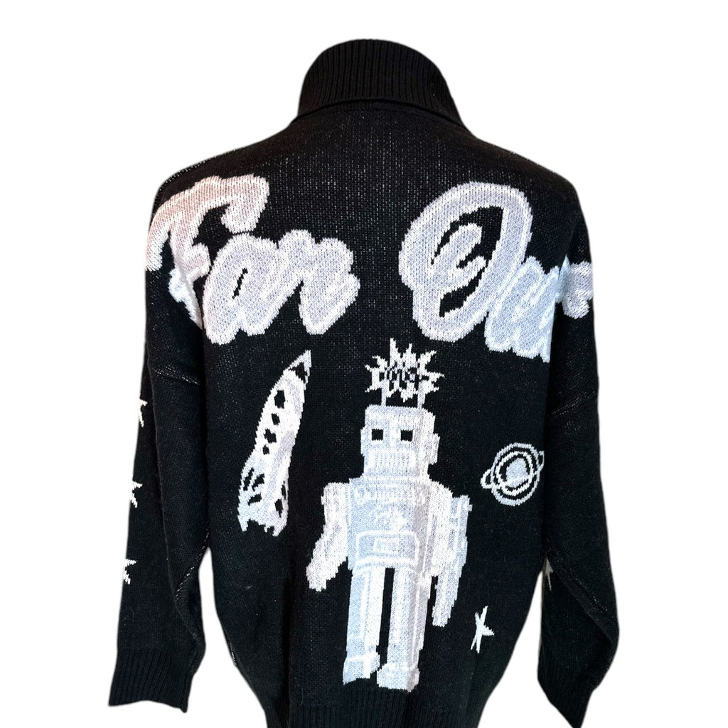 Spirit Jersey Black Full Zip Far Out Robot Oversized Unisex Sweater