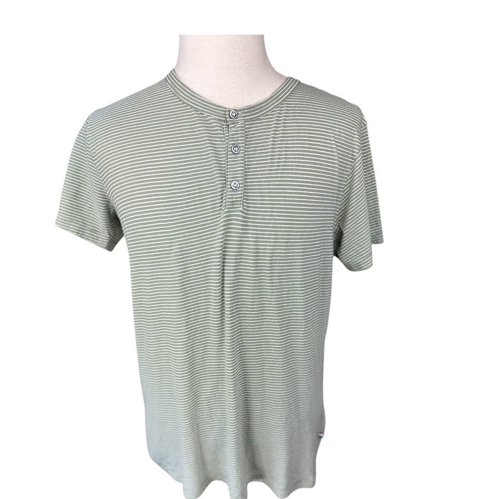 Sol Angeles Olive Green Striped Henley Made In USA Large NEW