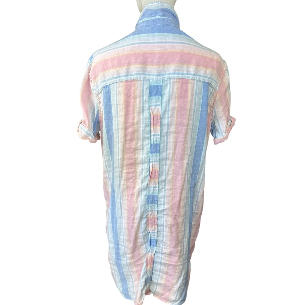 Southern Tide Pink & Blue Striped Linen Cotton Mini Shirt Dress Preloved Large*