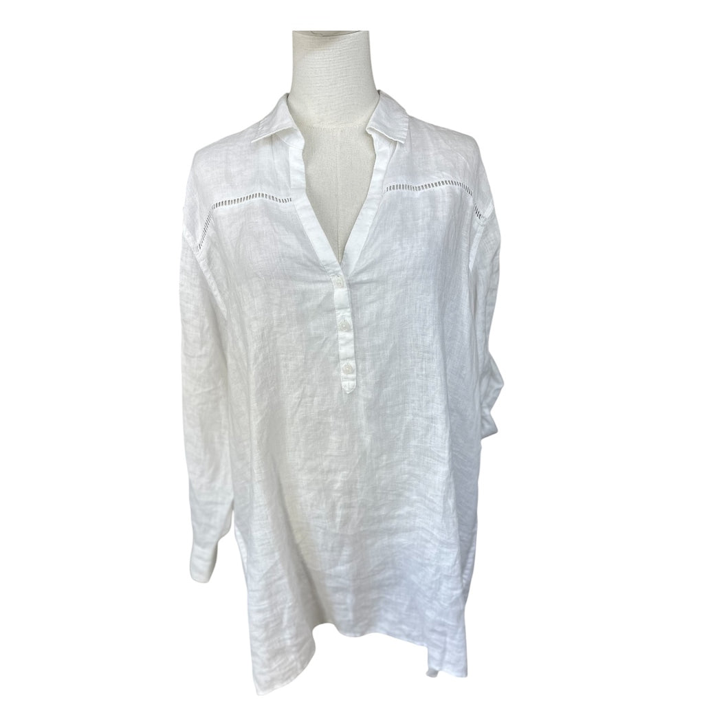 DKNY White Linen Tunic Beachwear Coverup Shirt Womens Large*