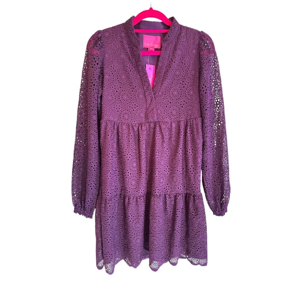 Lilly Pulitzer Cherry Ganache Winona Long Sleeve Eyelet Dress Size XXS NEW