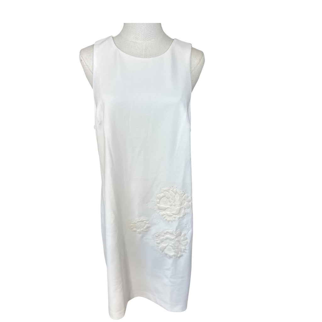 Betsy Johnson Ivory Lined Embroidered Flowers Sheath Dress Size 14 NEW