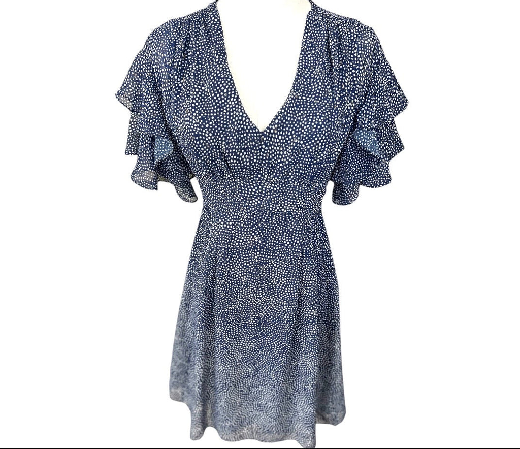 Betsy Johnson Navy Polka Dot Lined Flutter Sleeve Mini Dress Size 2*