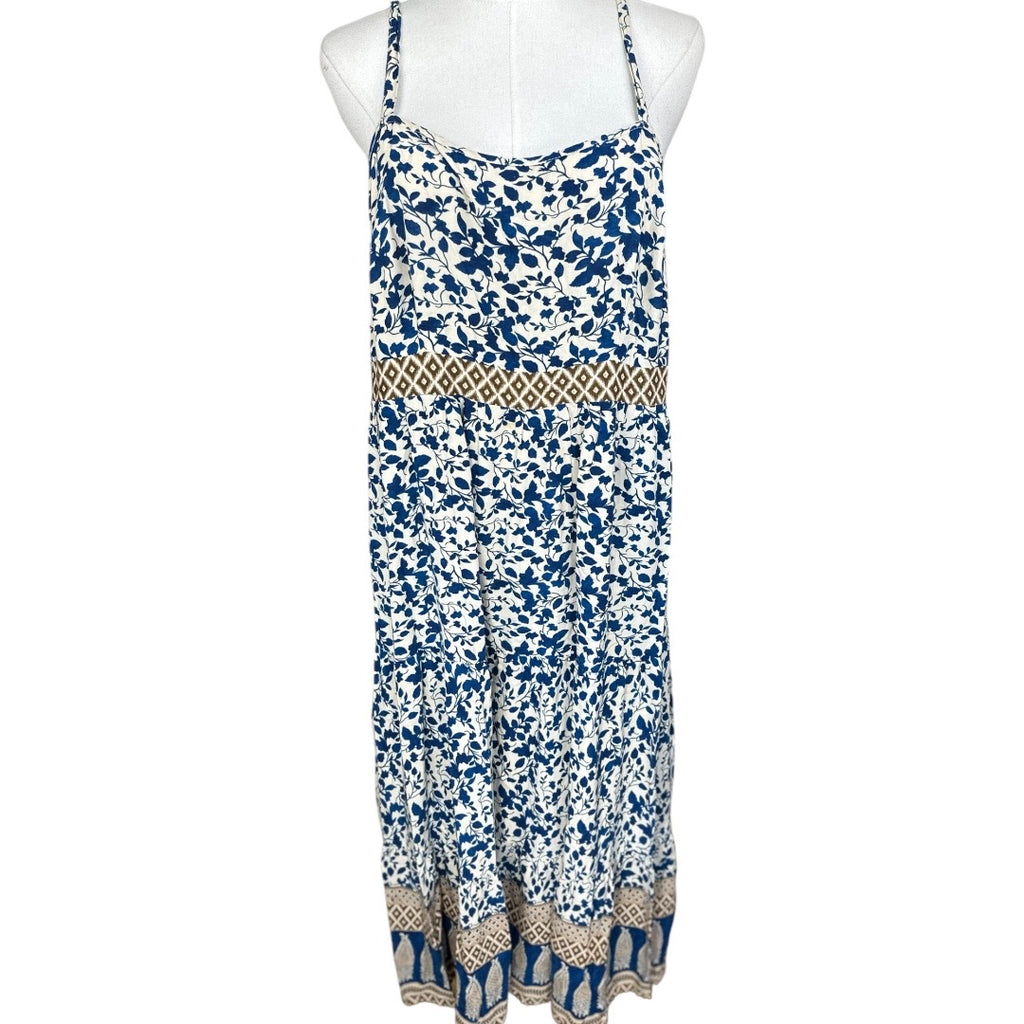 KORI Blue Colorblock Adjustable Straps Womens Maxi Dress Size Large NEW