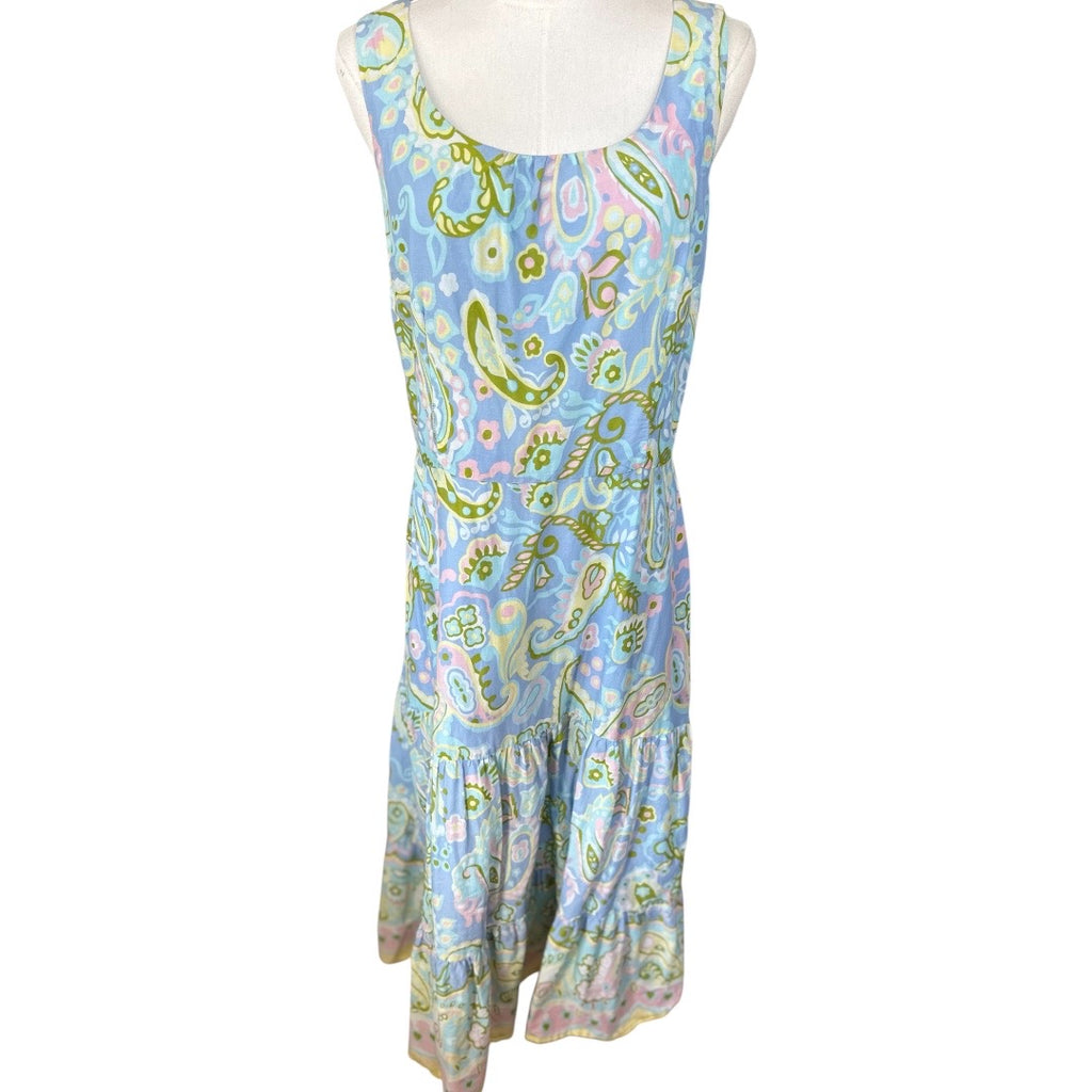 Talbots Voile Pastel Paisley Cotton Midi Dress Preloved Size 8*