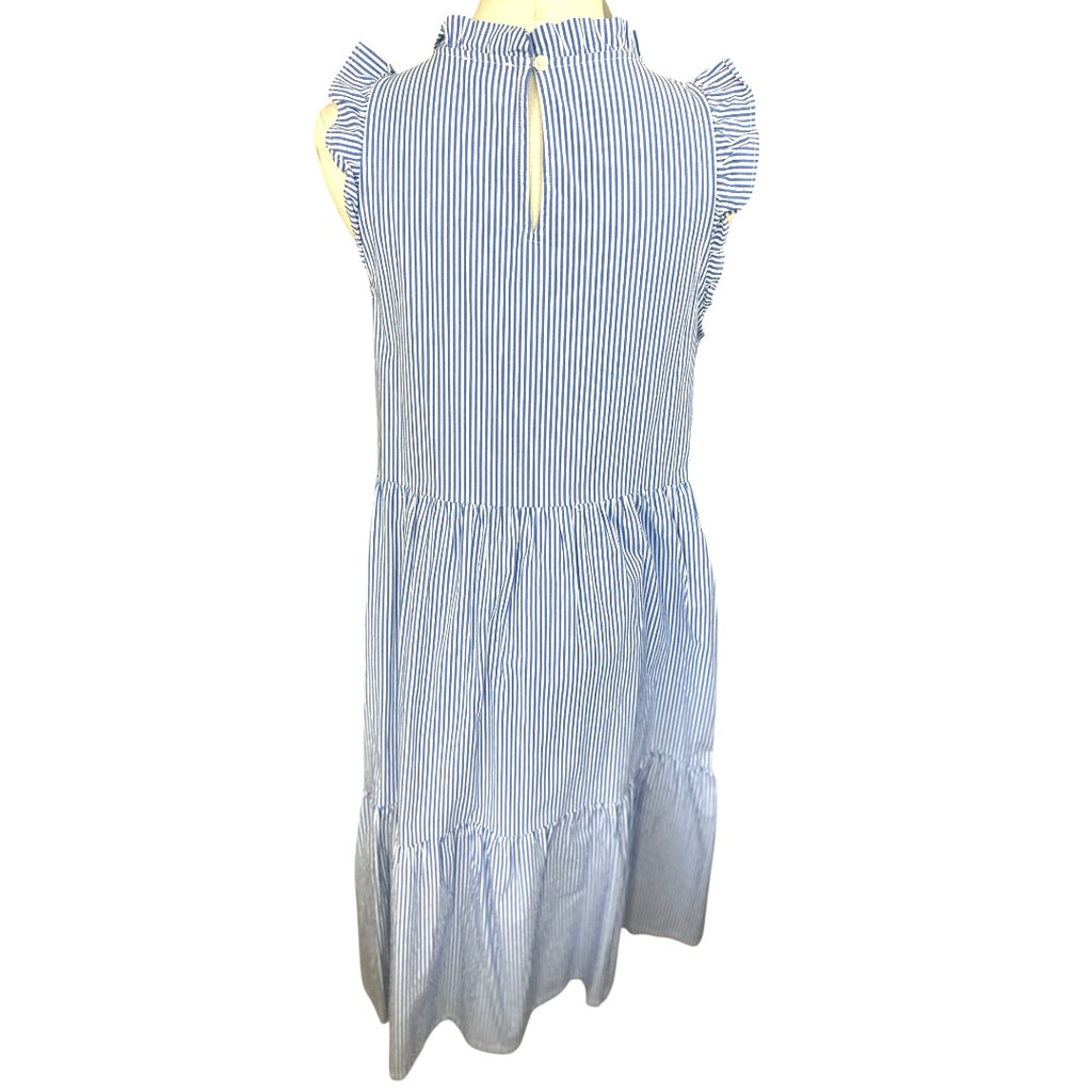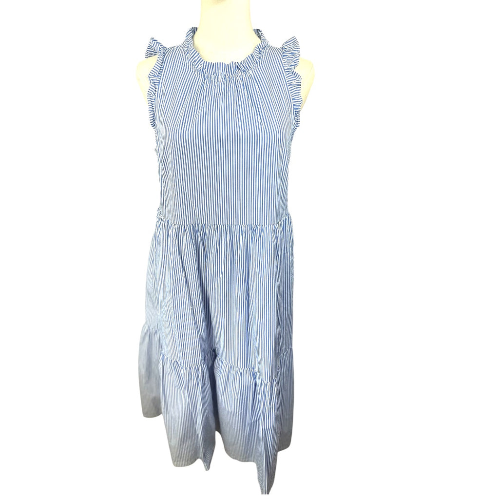 J. Crew Blue Striped Ruffle Womens Cotton MIdi Dress Size 4