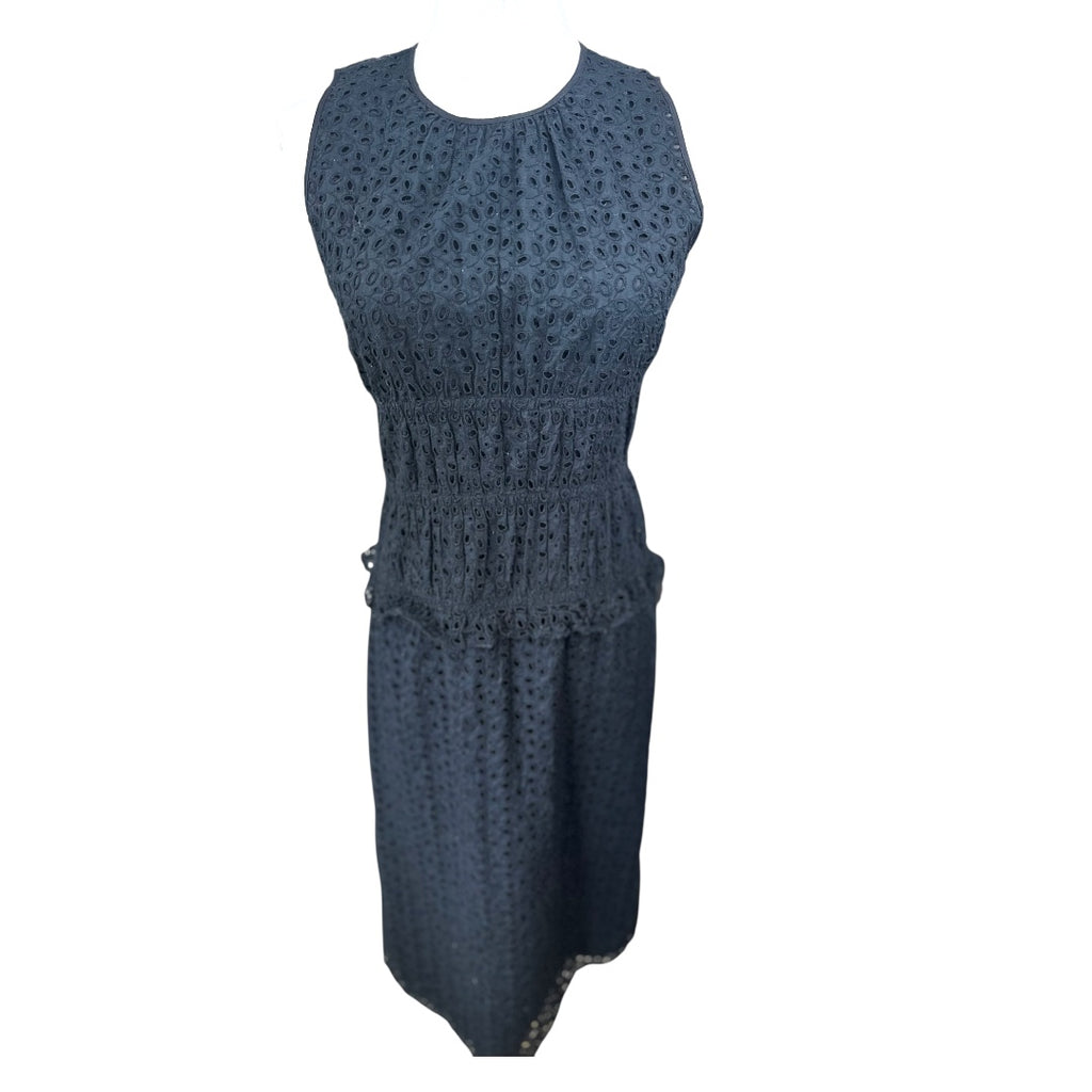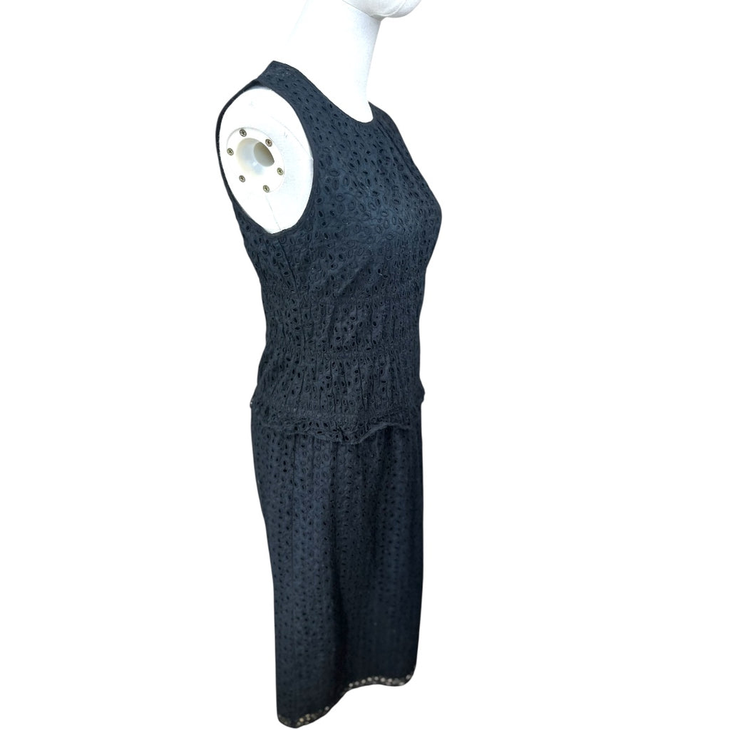Classiques Entier Black Smocked Eyelet Sleeveless Midi Dress Size 2*