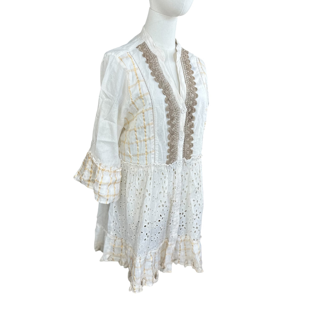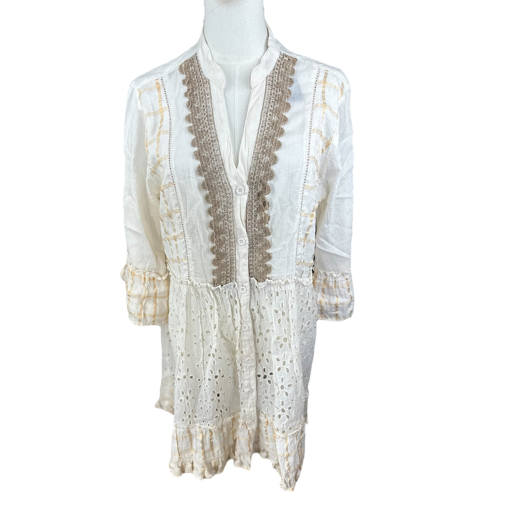 Me 2 Magic Neutral Tones Cotton Eyelet Womens Tunic Dress Large NEW