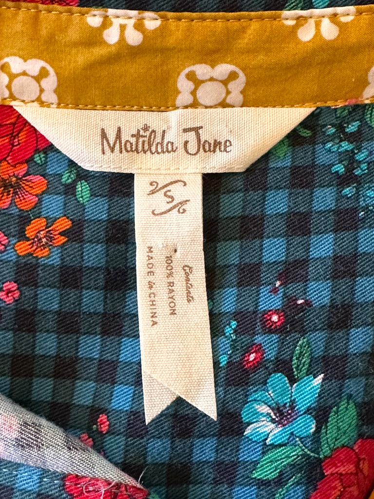 Matilda Jane Floral Check Belted Preloved Shirt Dress Small*
