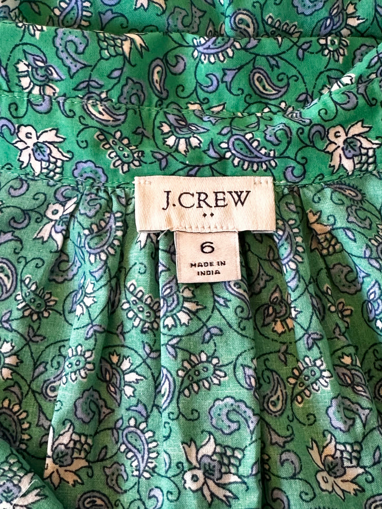J. Crew Emerald Green Floral Cotton Preloved Mini Dress Size 6*