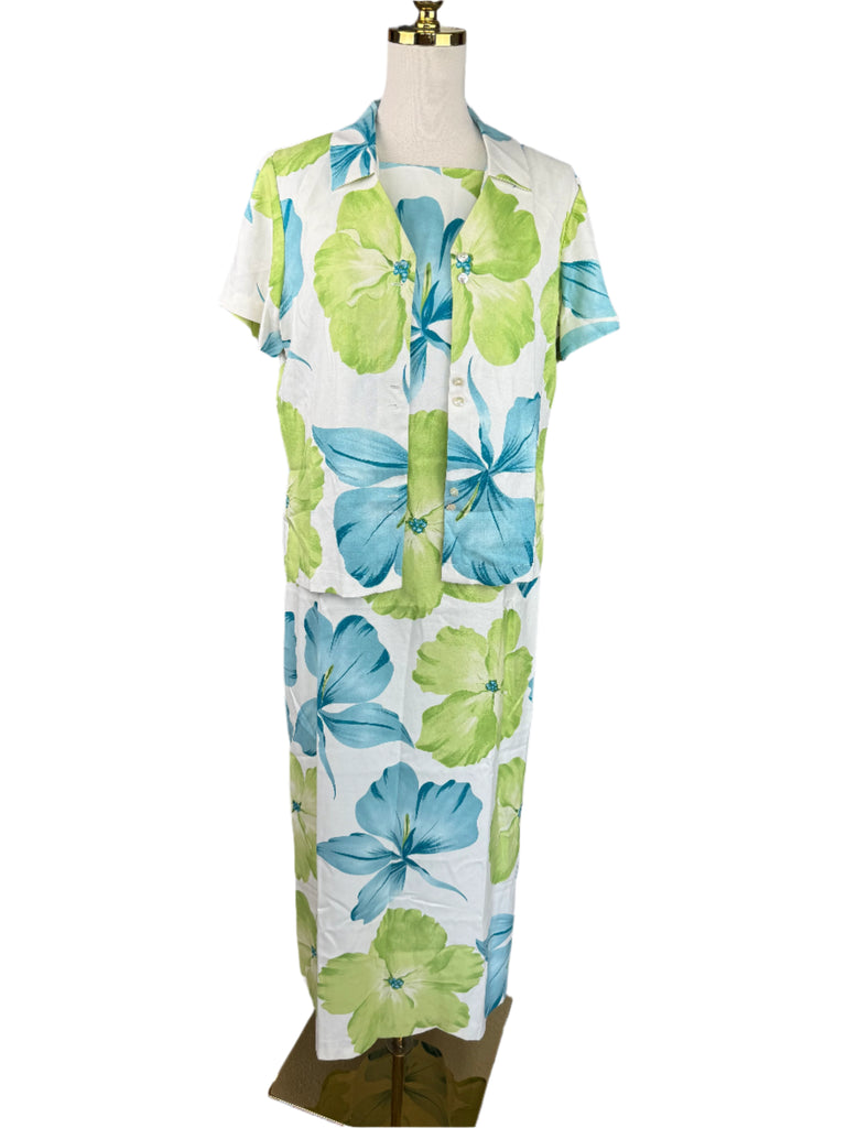 Tommy Bahama 100% Silk 2 Piece Hawaiian VINTAGE Sheath Dress Size Medium*