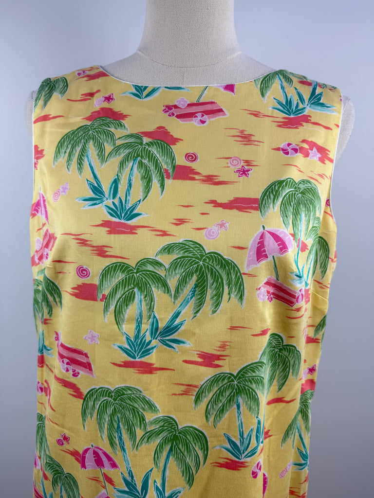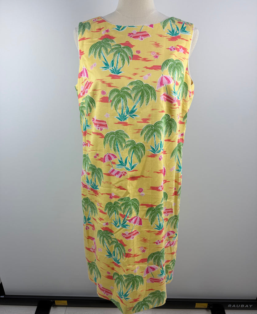 Talbots Yellow Hawaiian Lined Cotton Sleeveless Sheath Dress Preloved Petite 14*