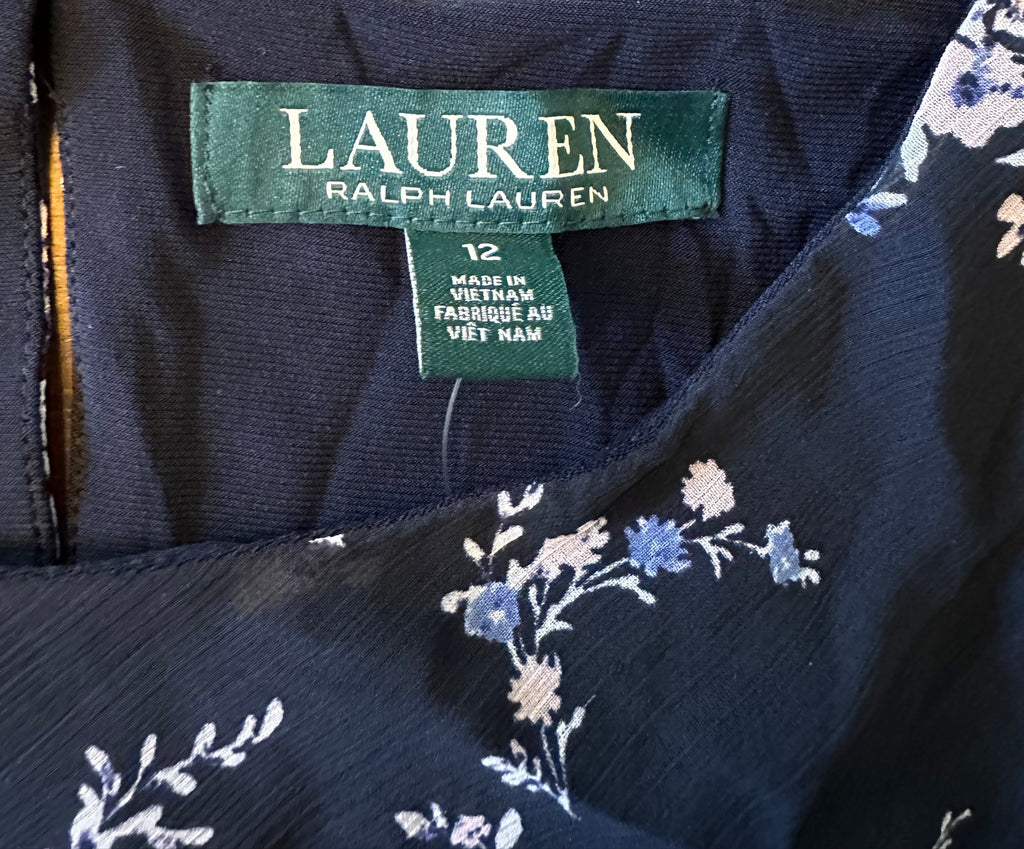Lauren Ralph Lauren Navy Floral Flutter Dress Size 12 NEW MSRP 125