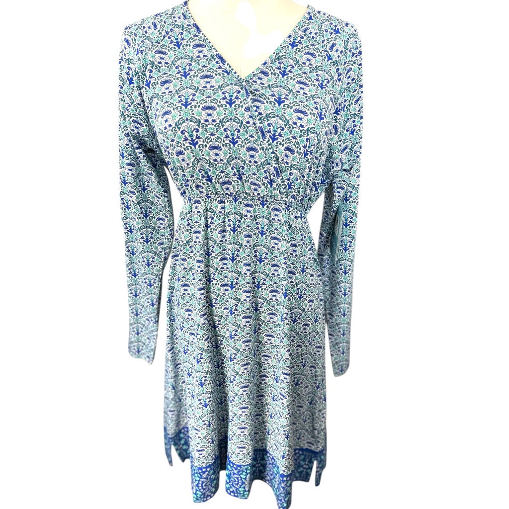 Entro Floral Ruffle Long Sleeve Cotton Mini Dress Large NEW