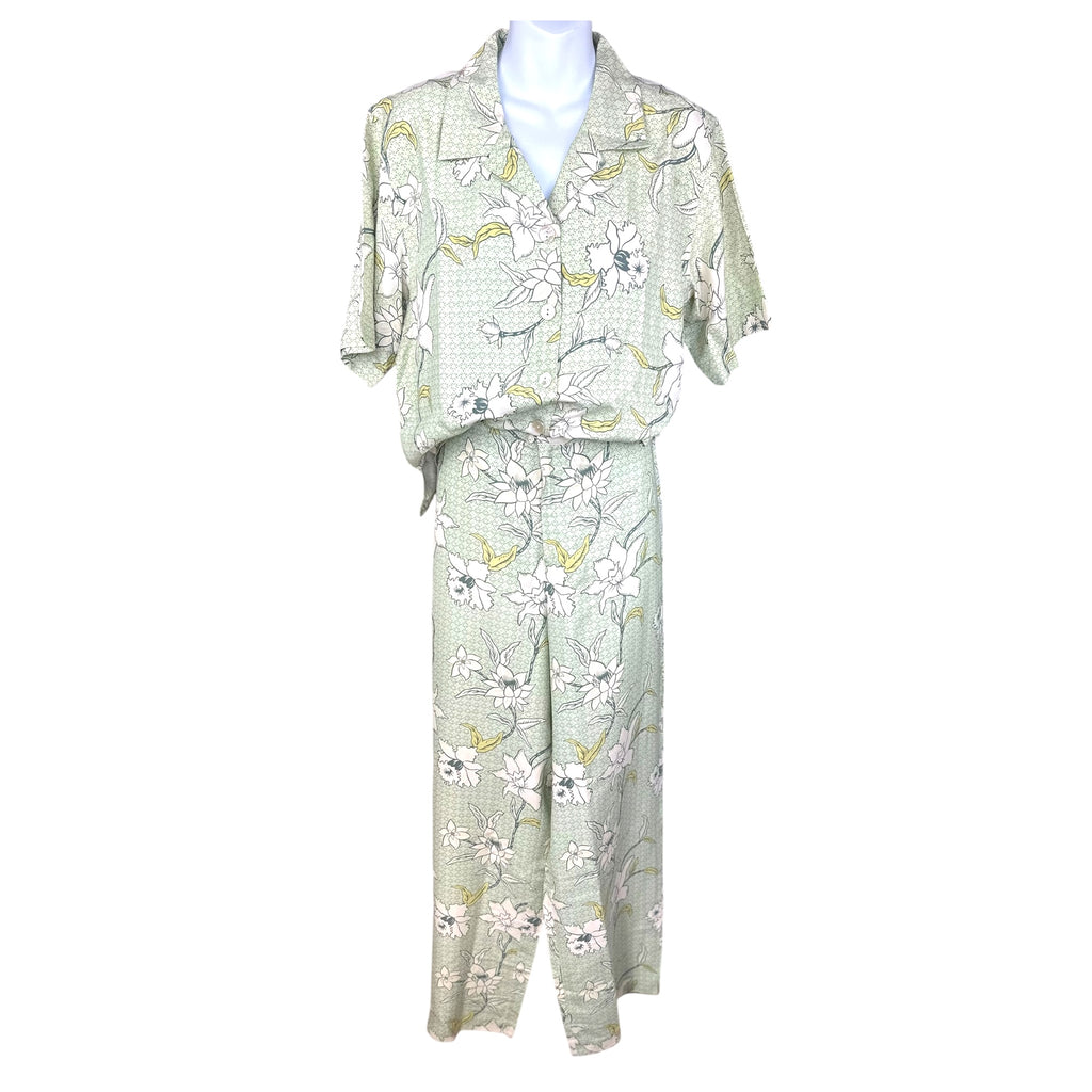Tommy Bahama Green Floral Silk Vintage Shirt & Pants 2 Piece Set Medium*