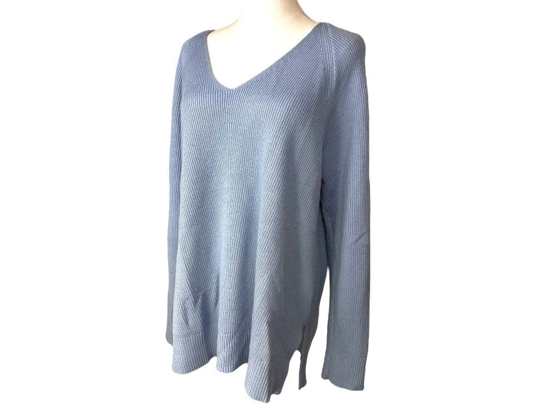 Athleta Ribbed Light Blue V Neck Sweater Size Large*
