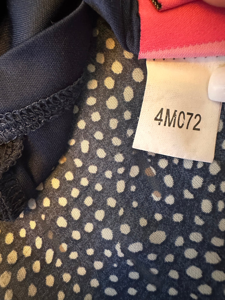 This Betsey Johnson mini dress in size 2 features a navy base with classic polka dot lining and delicate flutter sleeves, offering a playful yet refined silhouette. With a chest measurement of 32", waist 30", and length of 35", it provides a tailored fit that flatters the figure while maintaining comfort. Ideal for stylish occasions, this dress combines timeless patterns with a modern cut for a versatile addition to your wardrobe.