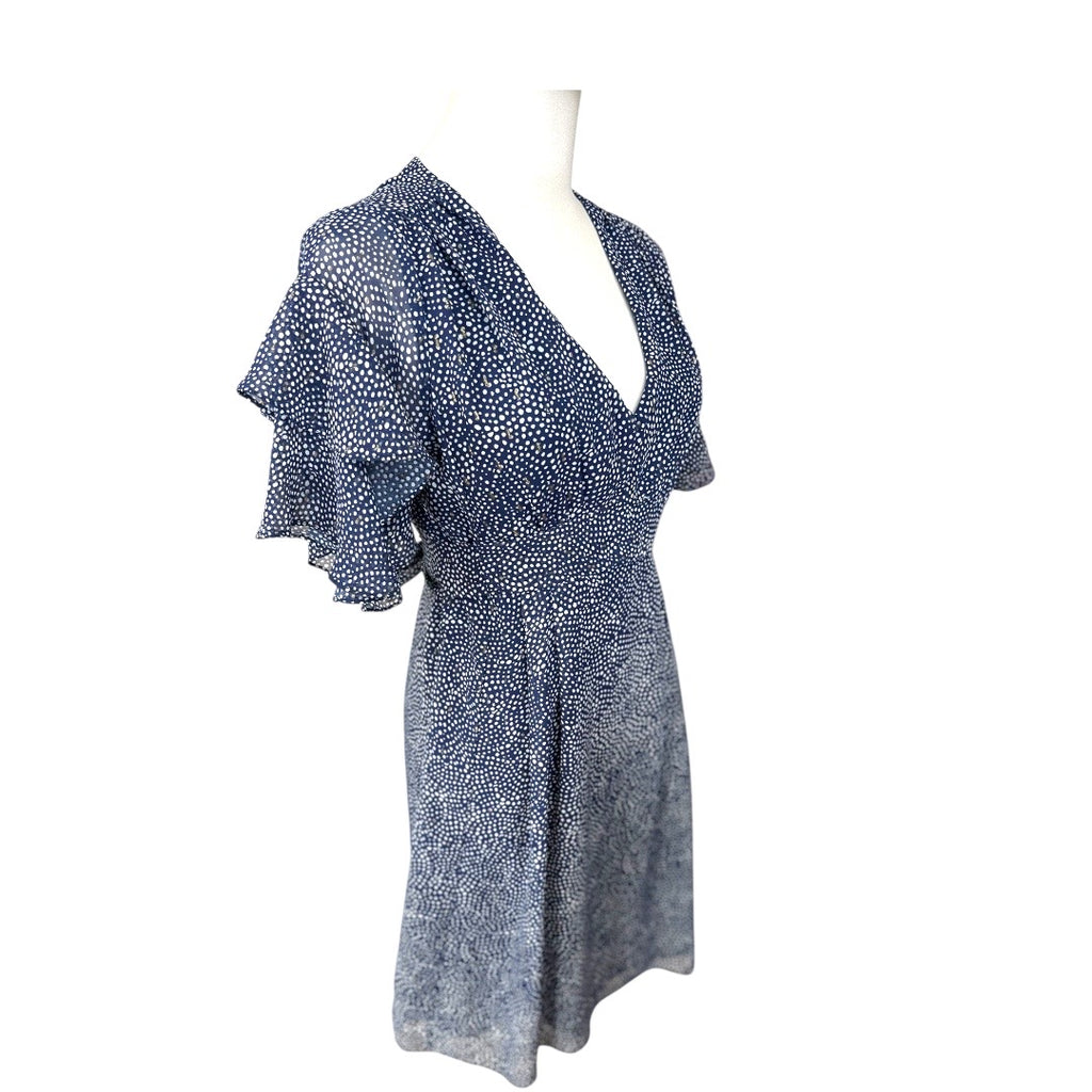 Betsy Johnson Navy Polka Dot Lined Flutter Sleeve Mini Dress Size 2*