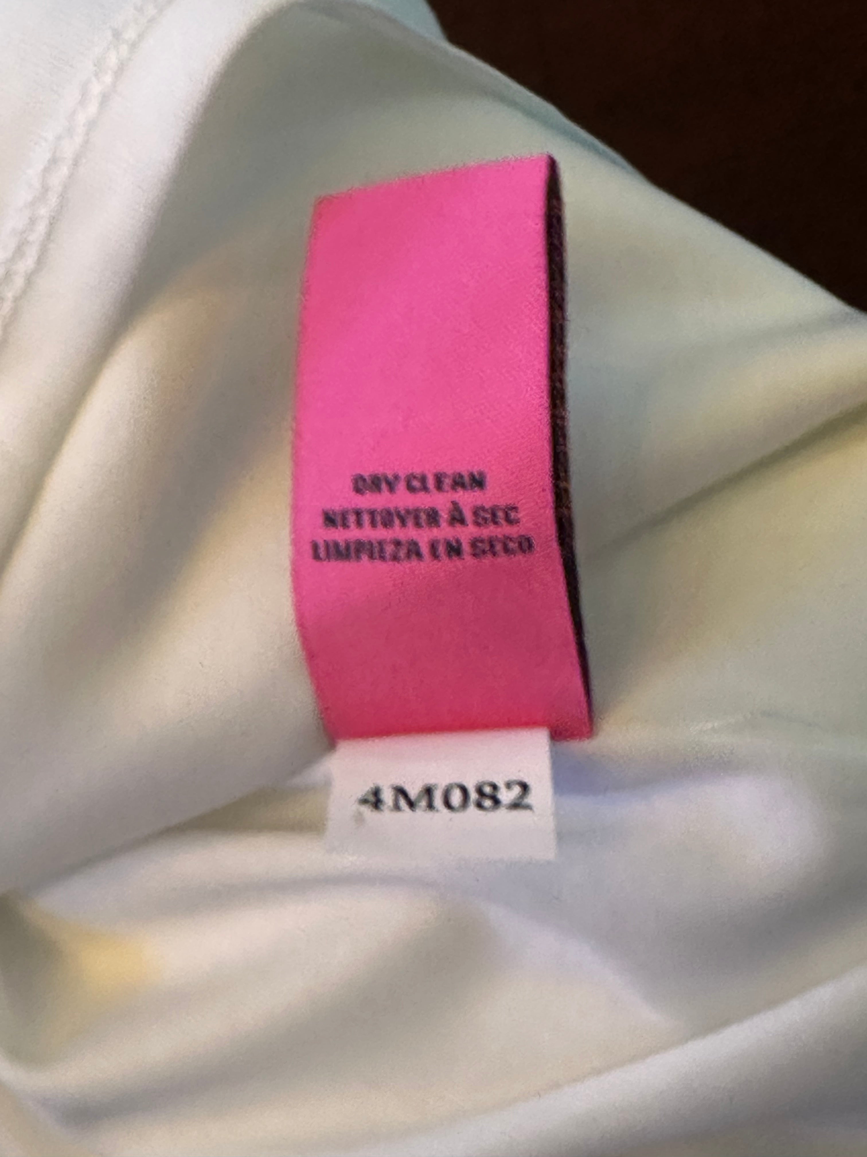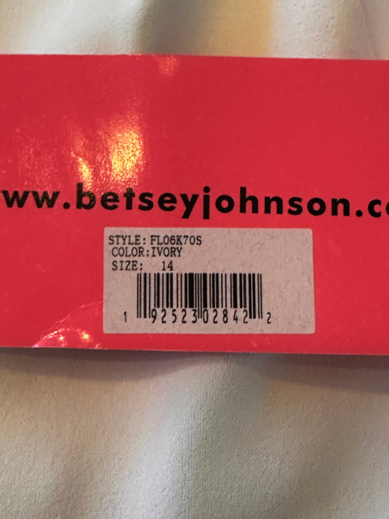 This Betsy Johnson sheath dress in size 14 features an ivory lining and intricate embroidered floral details, offering a refined and elegant silhouette. With a chest measurement of 38", waist 40", and length 38", it provides a comfortable yet flattering fit. Ideal for formal occasions, this dress combines classic design with expert craftsmanship to enhance your wardrobe with timeless style.