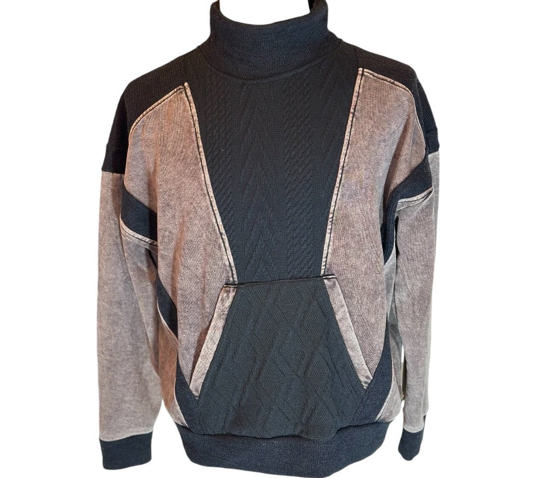 BKE by Buckle Turtle Neck Distressed Color Block Mens Sweater Size Large