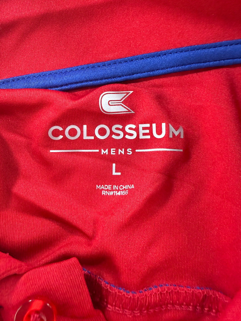Elevate your game day look with the Colosseum Kansas Jayhawks Red Embroidered Men’s Polo Shirt. Crafted for durability and comfort, this performance-activewear piece features breathable fabric that keeps you cool and dry during activity. The bold red hue and precise Jayhawks embroidery provide a sharp, collegiate style, making it perfect for fans who want to showcase their team pride with expert-quality apparel. Designed in a large size to ensure a comfortable fit, this polo balances athletic function with everyday wearability.