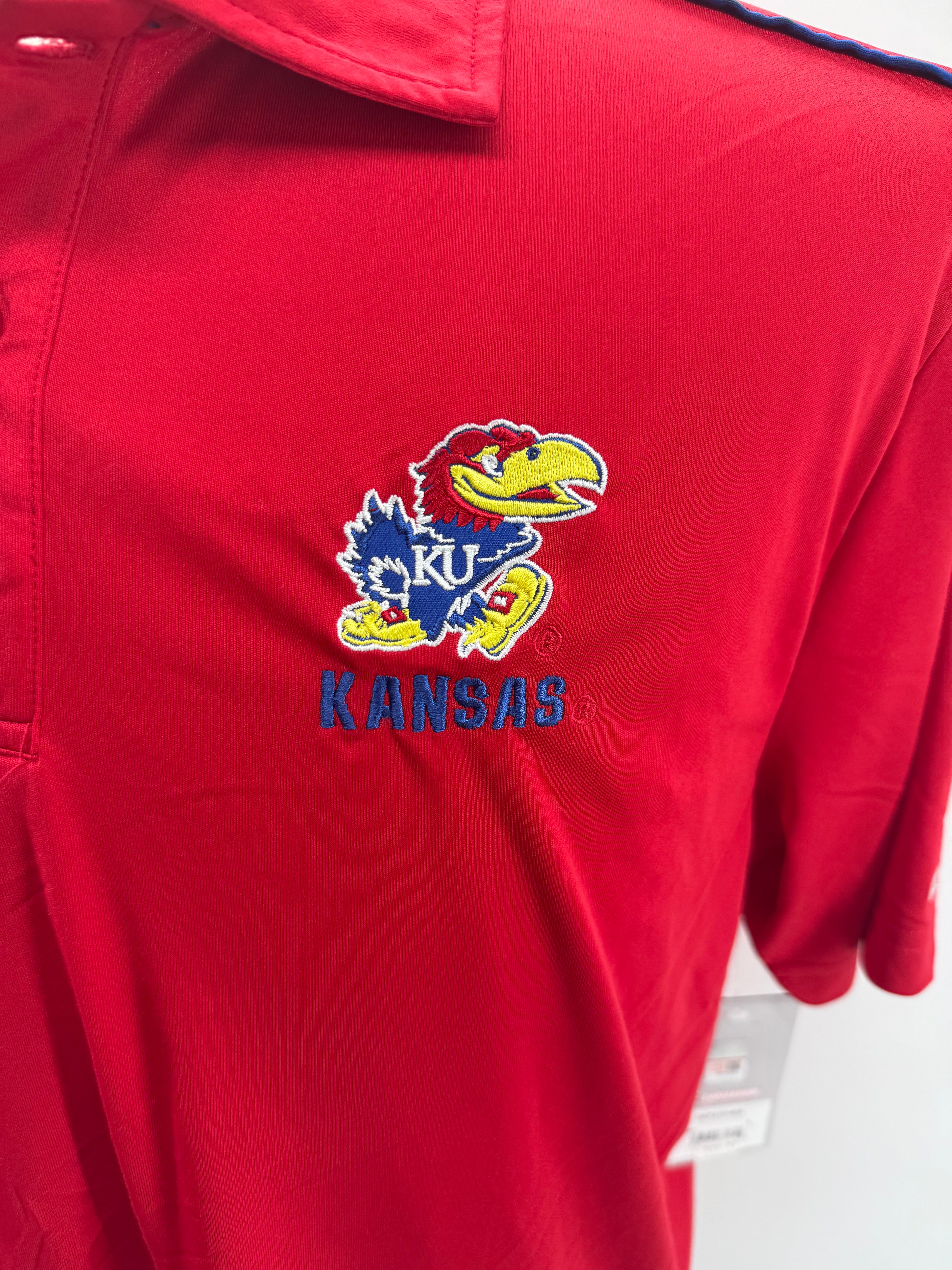 Colosseum Kansas Jayhawks Red Embroidered Mens Polo Shirt Large NEW