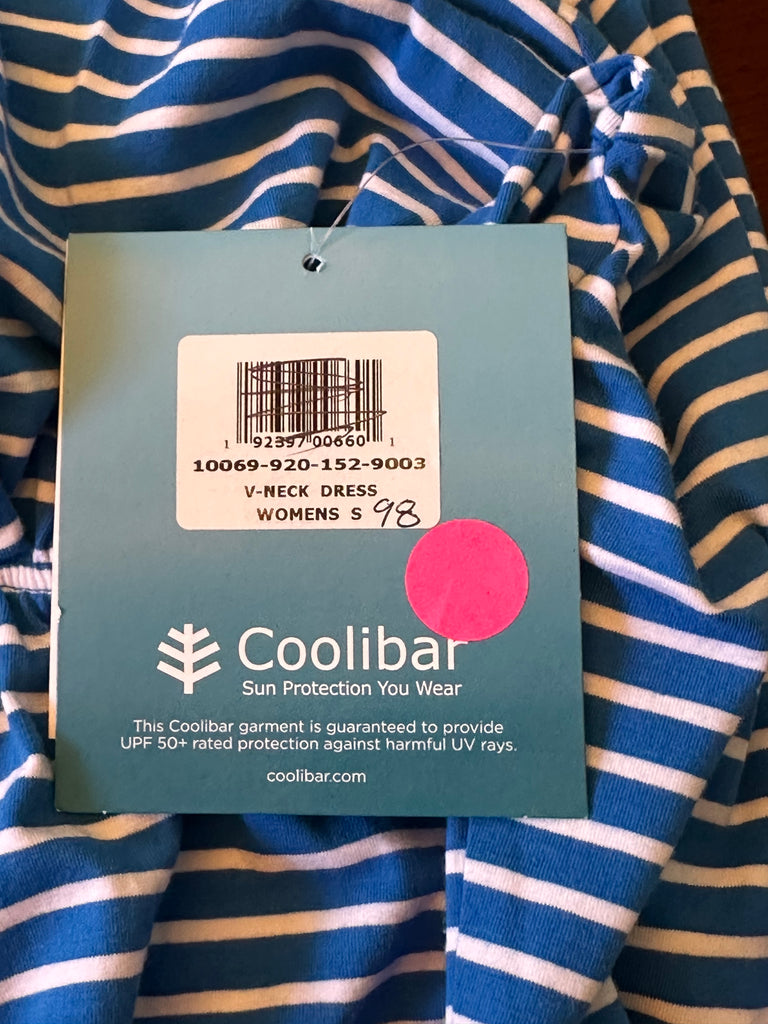 Expertly designed Coolibar Striped Long Sleeve Shirt Dress offers superior UPF 50 sun protection in a stylish silhouette. Size Small features precise measurements (Chest: 38", Length: 36", Sleeve: 27") for an optimal fit. Perfect for sun-conscious individuals seeking both protection and fashion-forward design. Brand new condition.