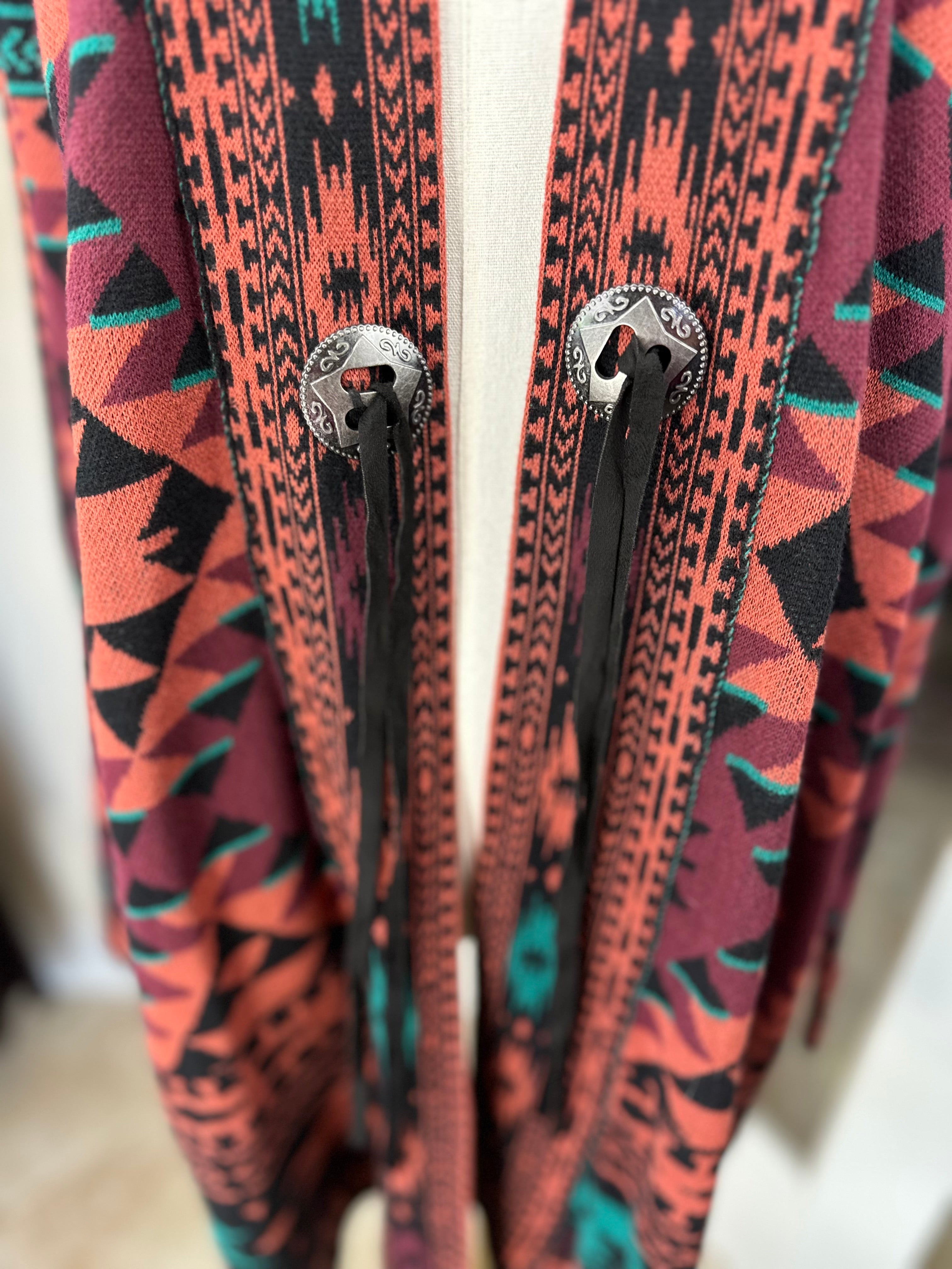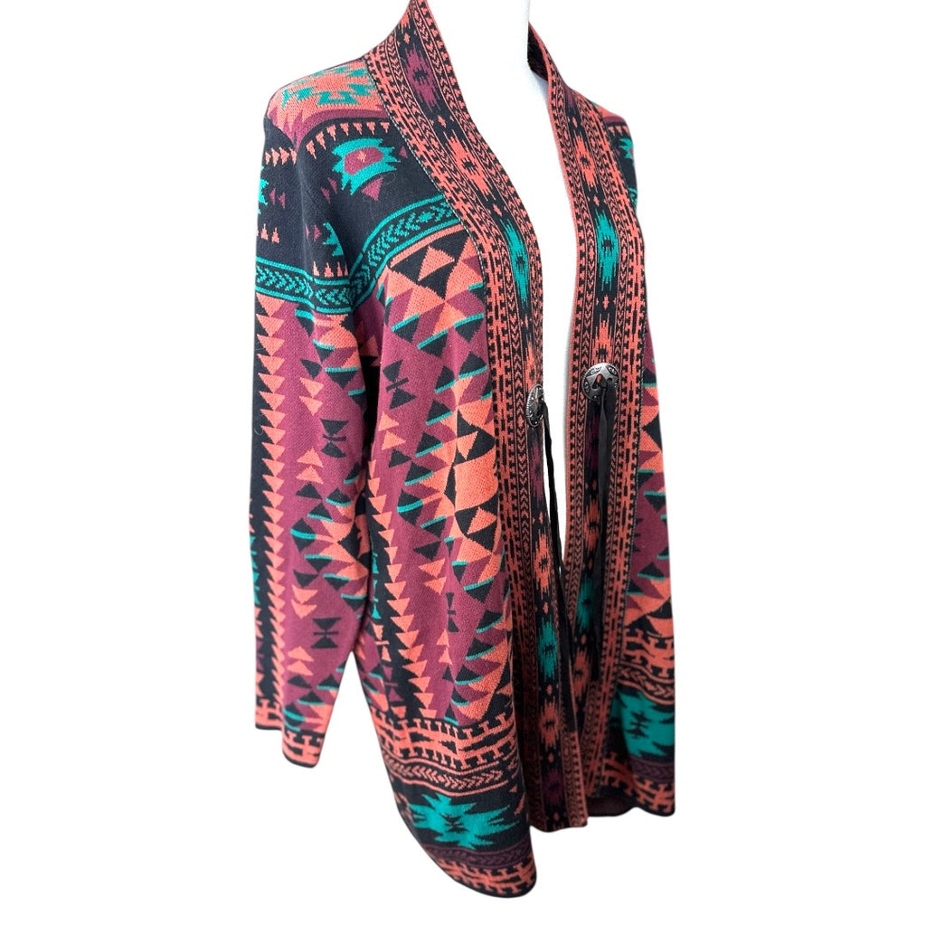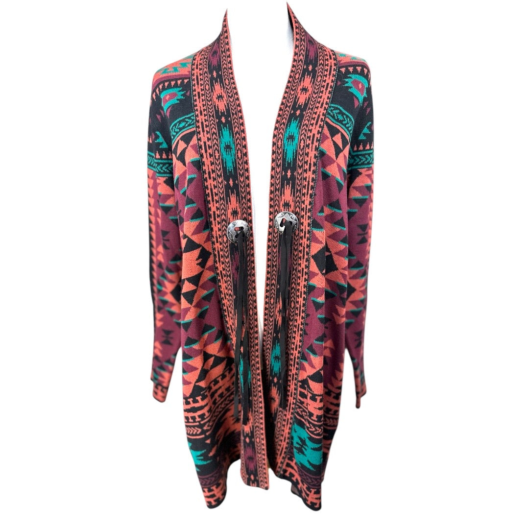 Cotton & Rye Outfitters Western Knit Tassel Tie Cardigan Sweater Large NEW