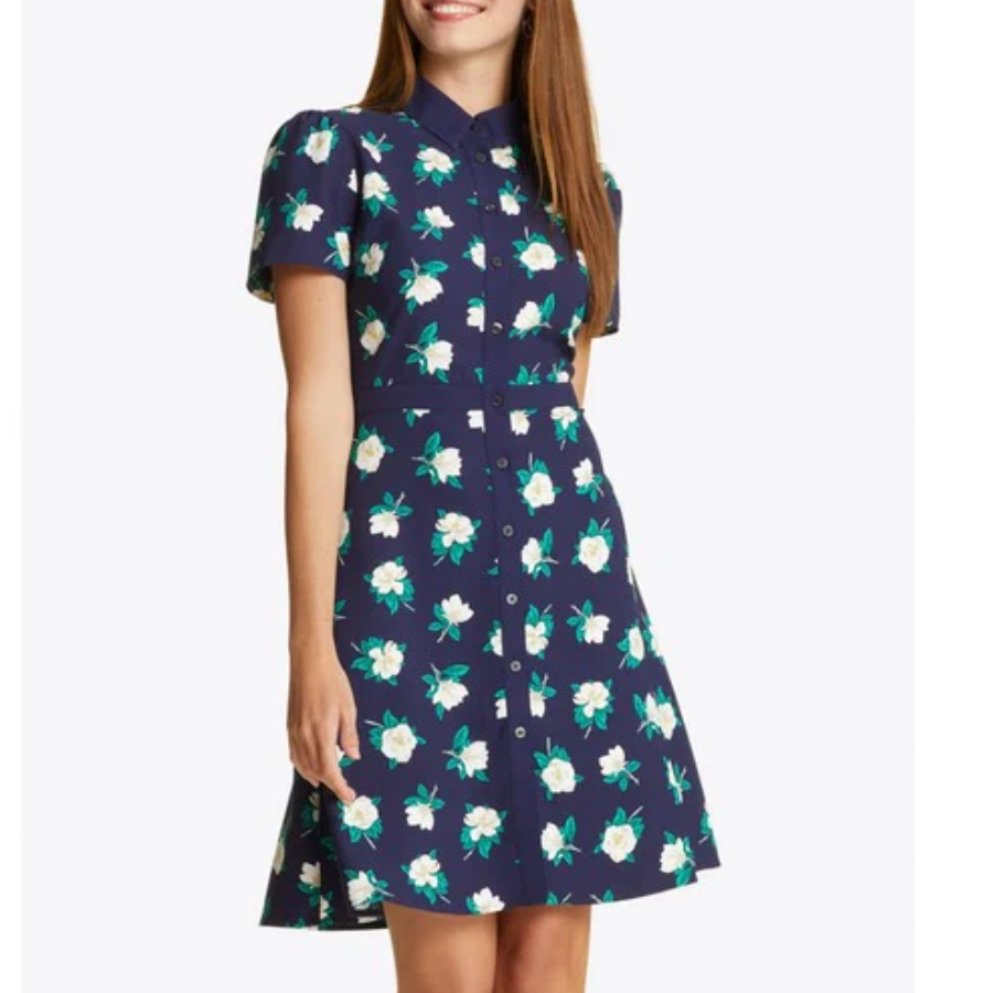Draper James Nassau Navy Floral Shirt Dress Size 6