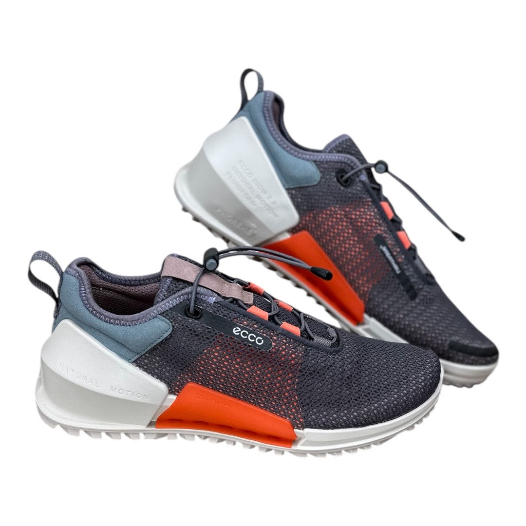 These Ecco Biom 2.0 Natural Motion Breathru Cross Trainer Womens Sneakers come in a stylish combination of grey, pink, and orange. Designed for natural movement, these sneakers provide comfort and support for your daily workout routine. Stay on top of your game with these fashionable and functional sneakers.