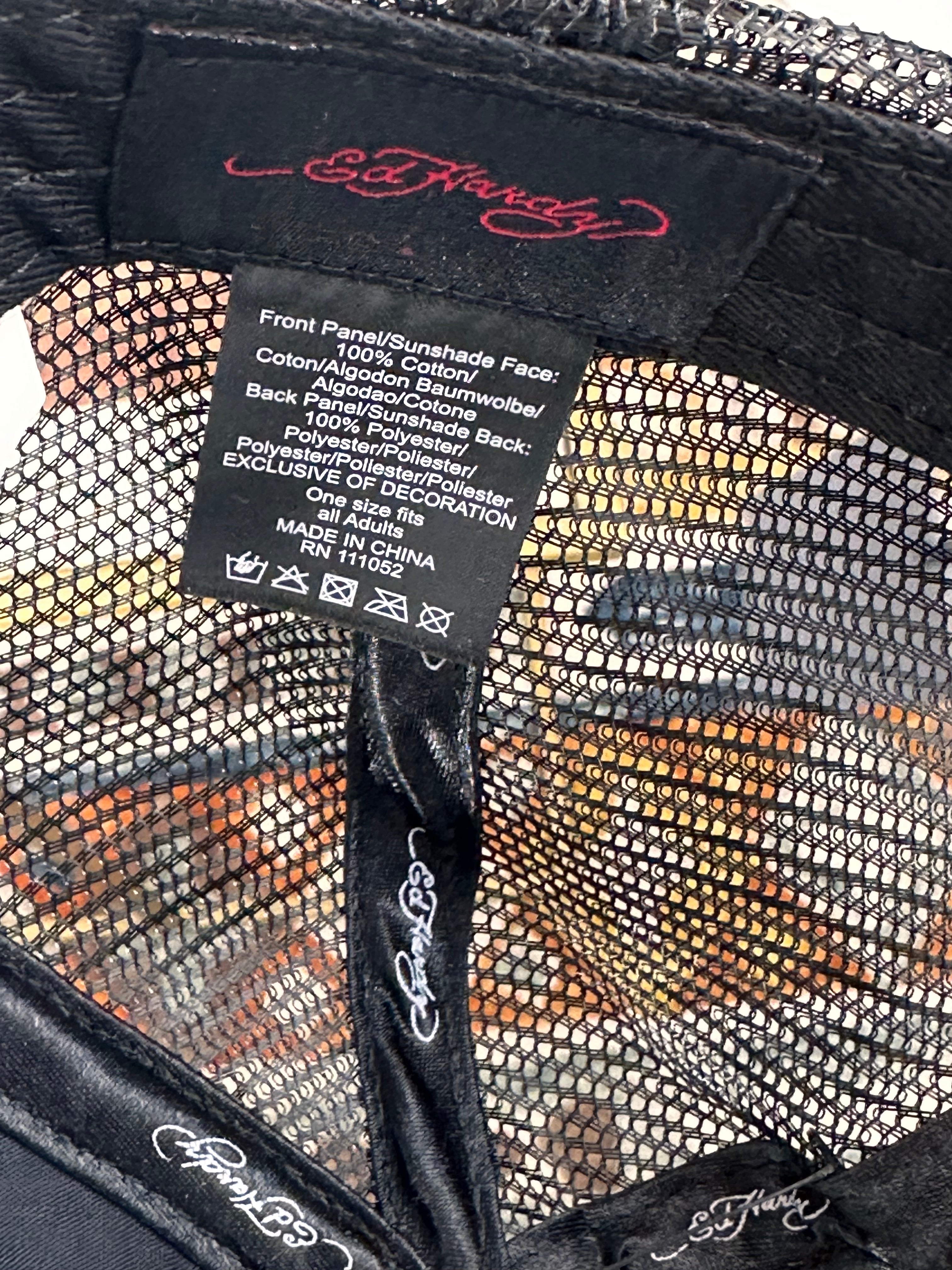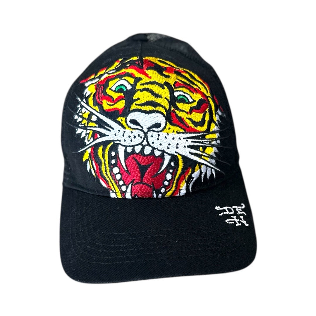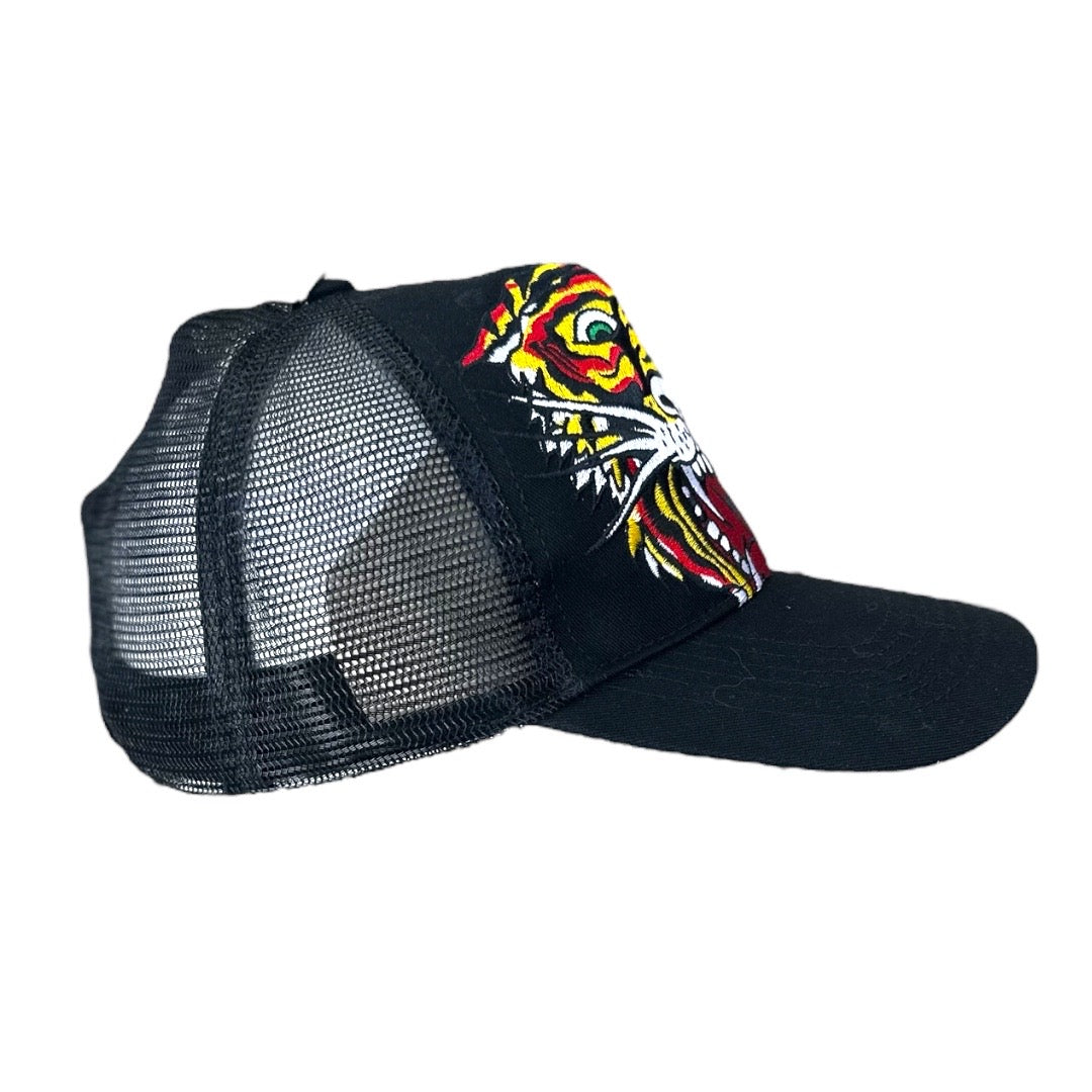 Ed Hardy Embroidered Large Tiger Black Trucker Hat NEW