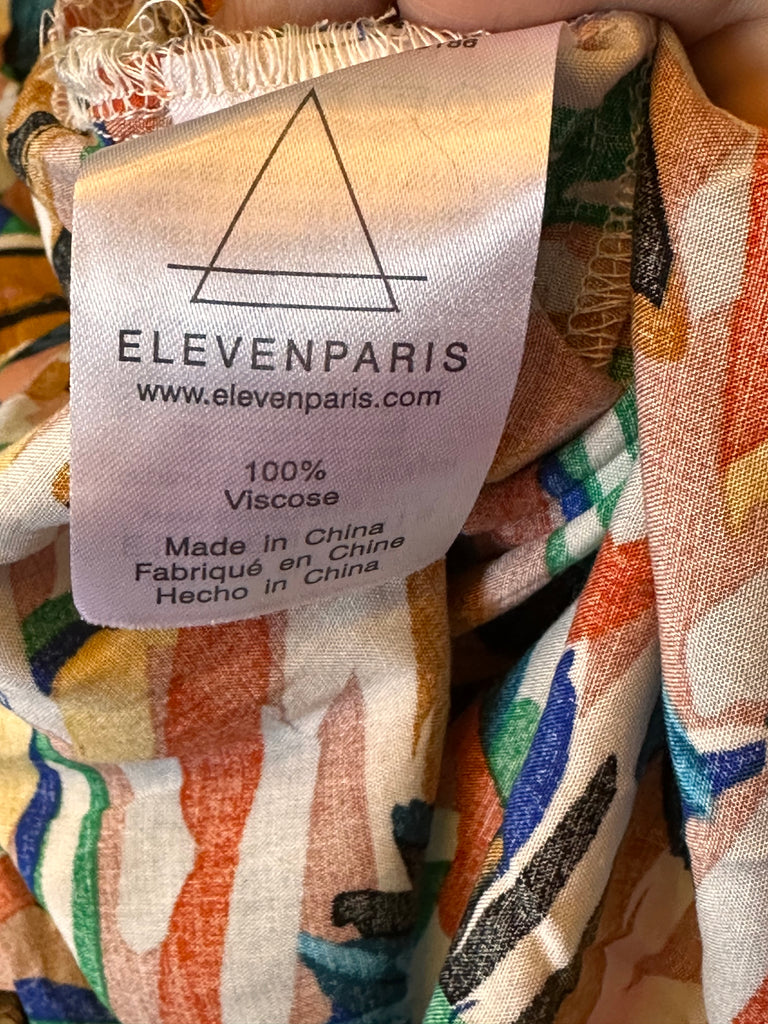 This Elevenparis Palm Springs Splatter Short Sleeve Shirt features a comfortable 42" chest measurement with a 30" length, crafted from 100% viscose fabric for exceptional breathability and drape. The premium viscose construction offers a luxurious feel against the skin while maintaining shape throughout wear. Designed specifically for women seeking both style and comfort in a size Large.