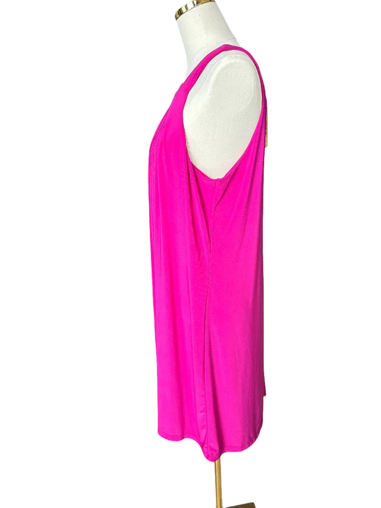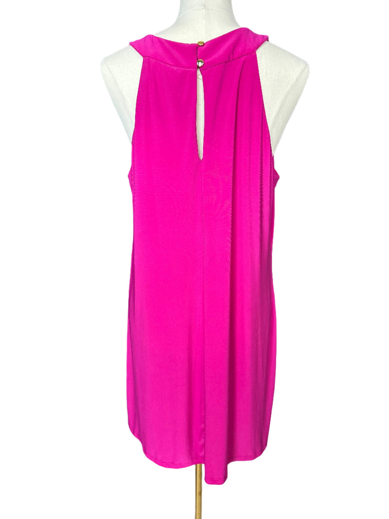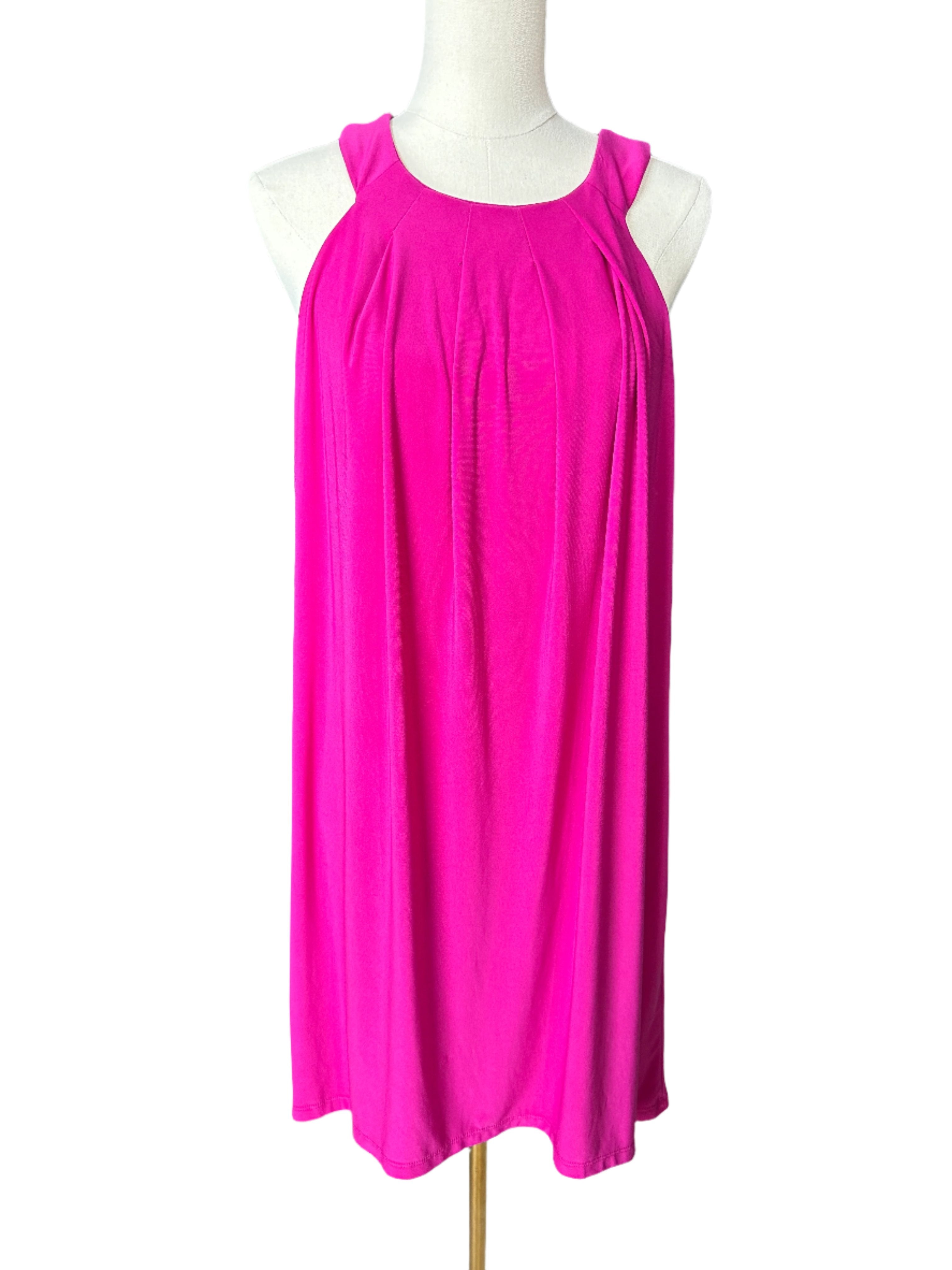 This Emma & Michele raspberry halter dress is elegantly lined, providing a comfortable and smooth fit. Made with high-quality materials, it offers both style and functionality for any occasion. Perfect for those looking to make a statement with confidence and sophistication. 21"Chest X42" Length. new without tags.