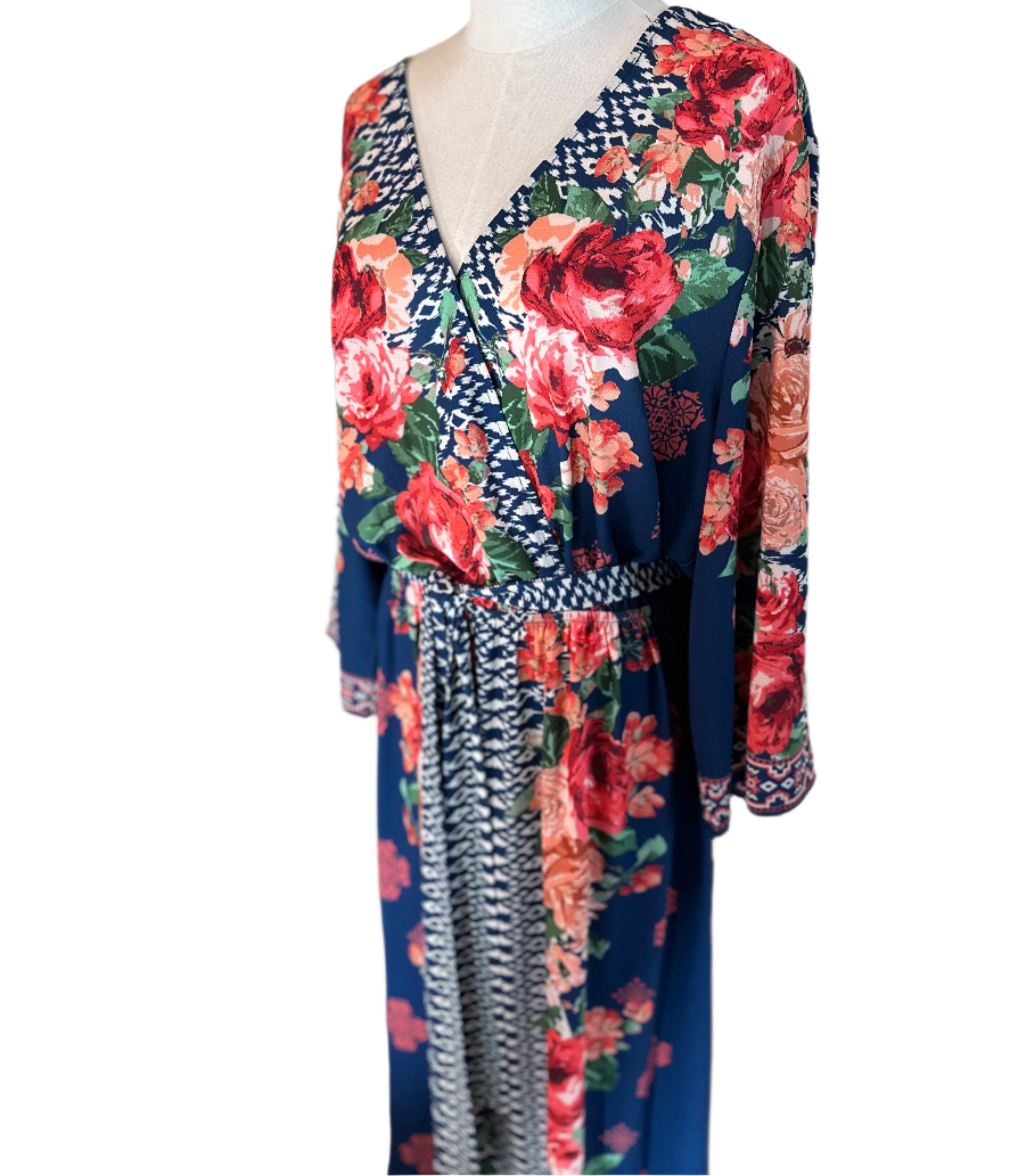 Flying Tomato Navy Floral Plus Size Maxi Dress Preloved Plus Size 1X*