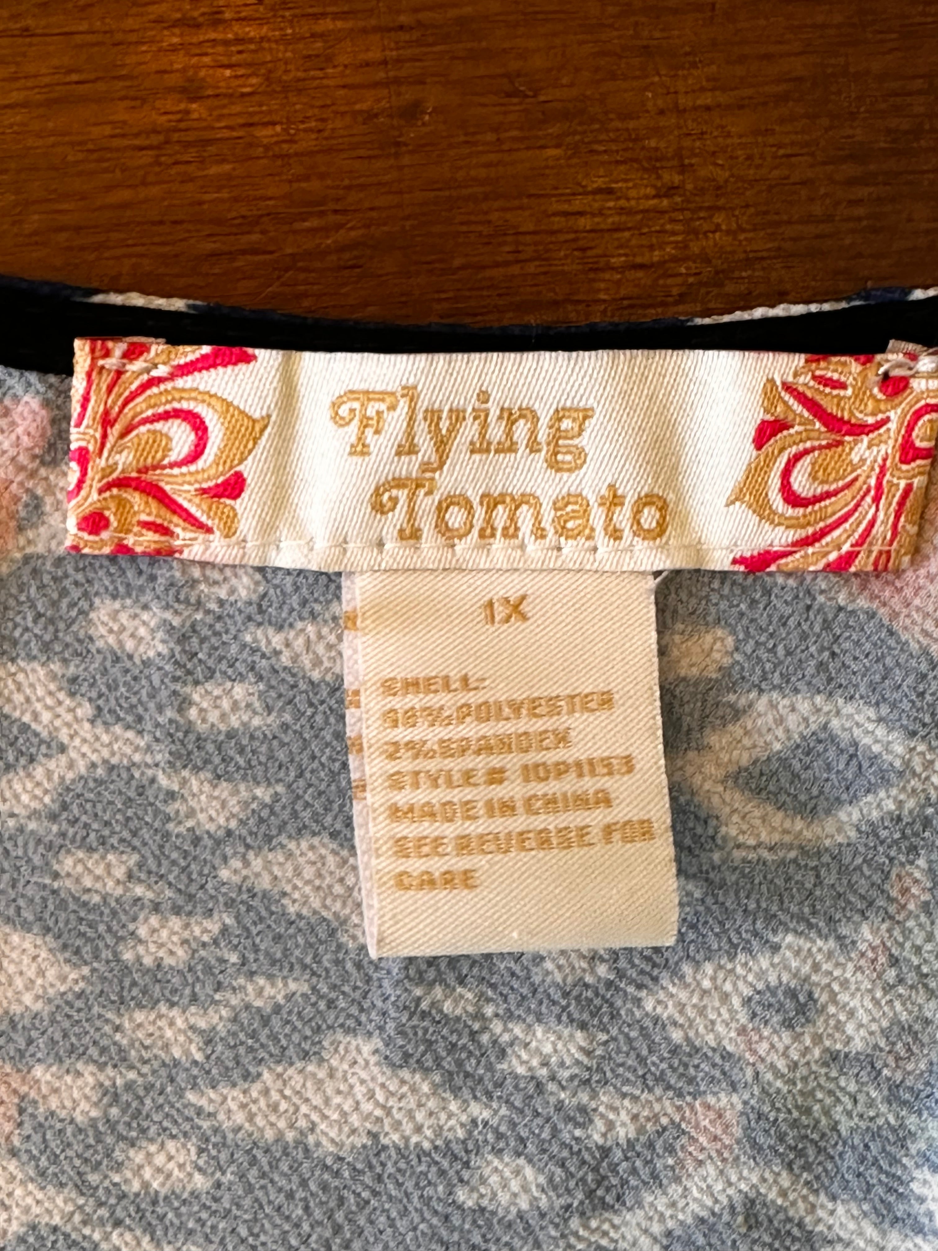 Introducing the Flying Tomato, made from a soft and durable blend of rayon and polyester. This unique fabric combination provides both comfort and longevity, making it the perfect choice for everyday wear. Upgrade your wardrobe with the Flying Tomato! *2Sistahs Take2 Collection.