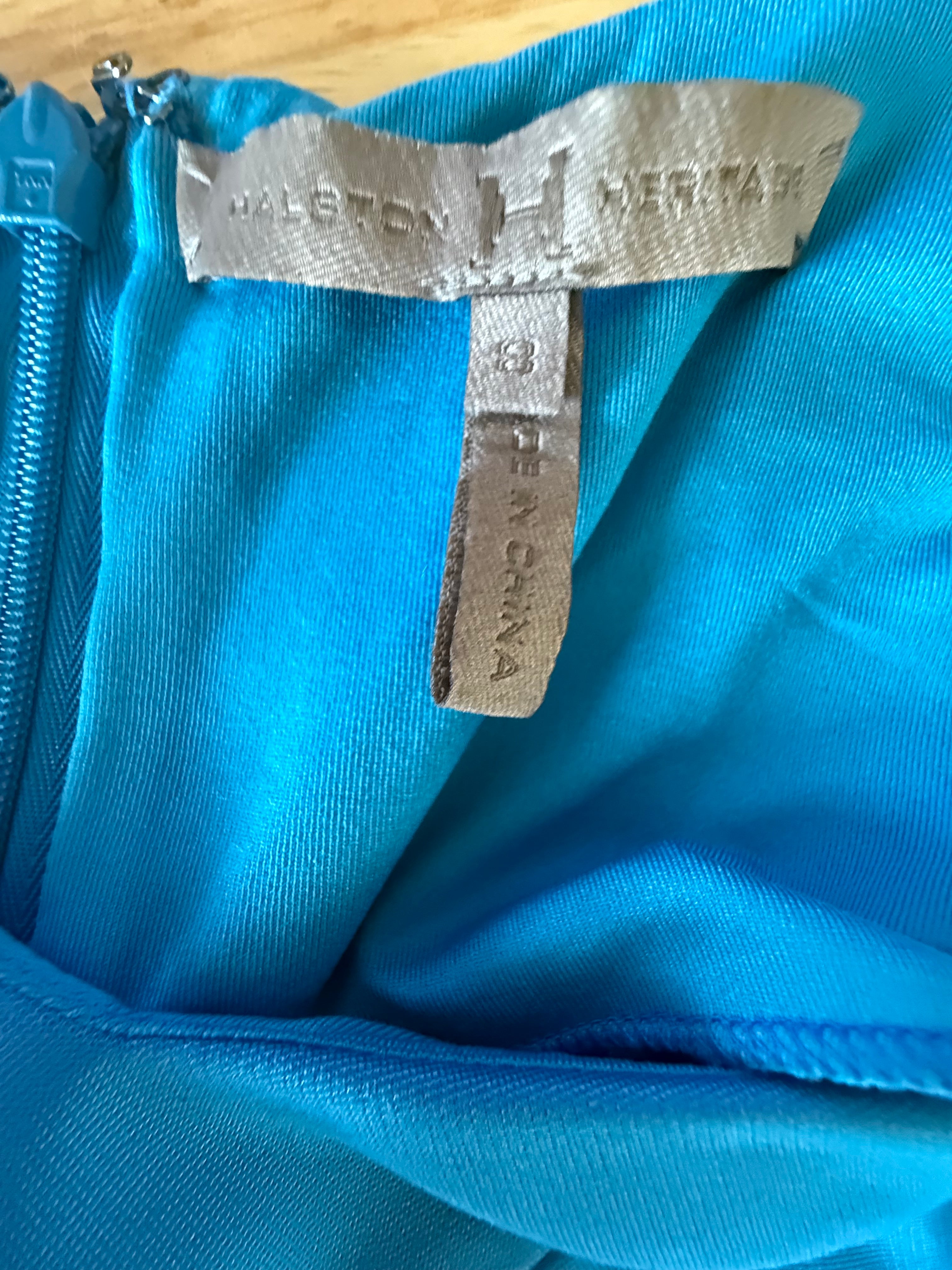Elevate your wardrobe with the Halston Heritage Blue Preloved Fit & Flare Dress. This size 8 dress boasts a flattering fit with a chest measurement of 38 inches and a waist of 30 inches. The back zipper ensures a secure fit, while the polyester material and lining provide comfort and style. Perfect for any occasion, this dress is sure to make you feel confident and chic.