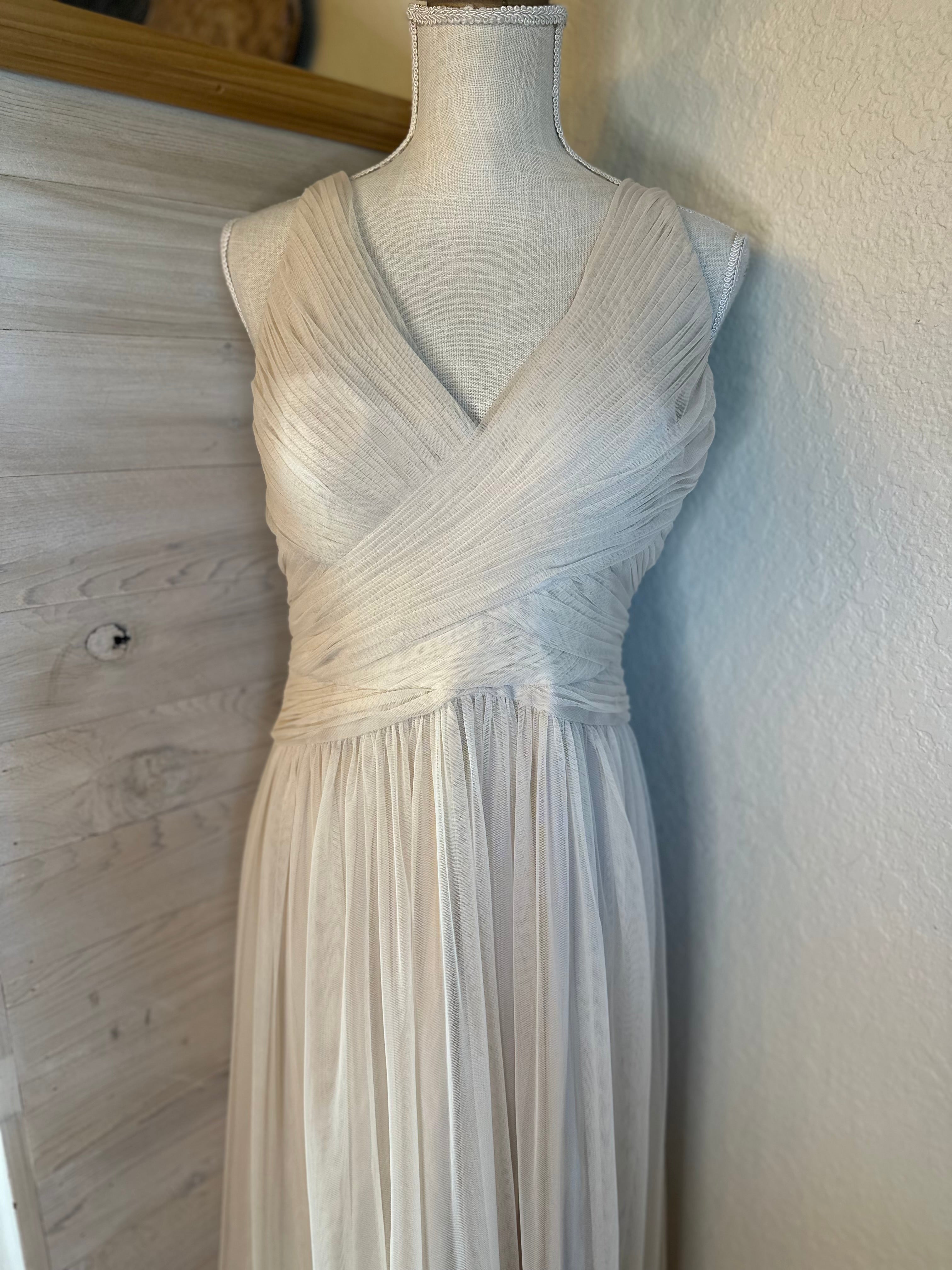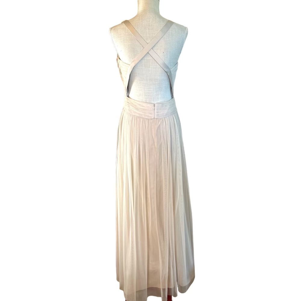 Hitherte by Anthropologie Sheer Champaigne Evening Dress