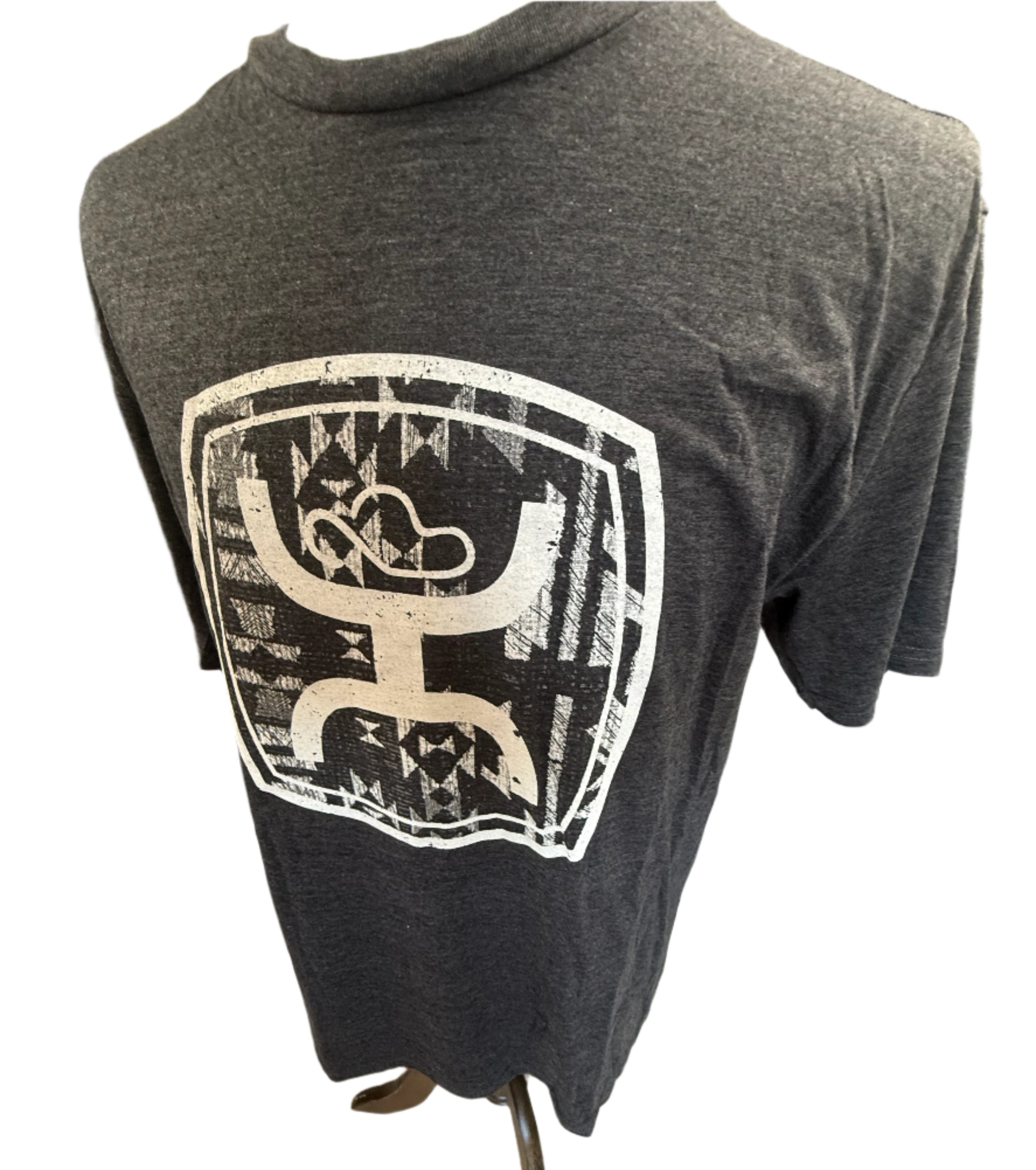 Experience ultimate comfort with our Hooey Aztec Logo Men's Tee. Made with a soft blend of cotton and polyester, this charcoal grey shirt offers a luxurious feel. Perfect for casual wear or as a base layer for outdoor activities. Chest 46", Length 30"