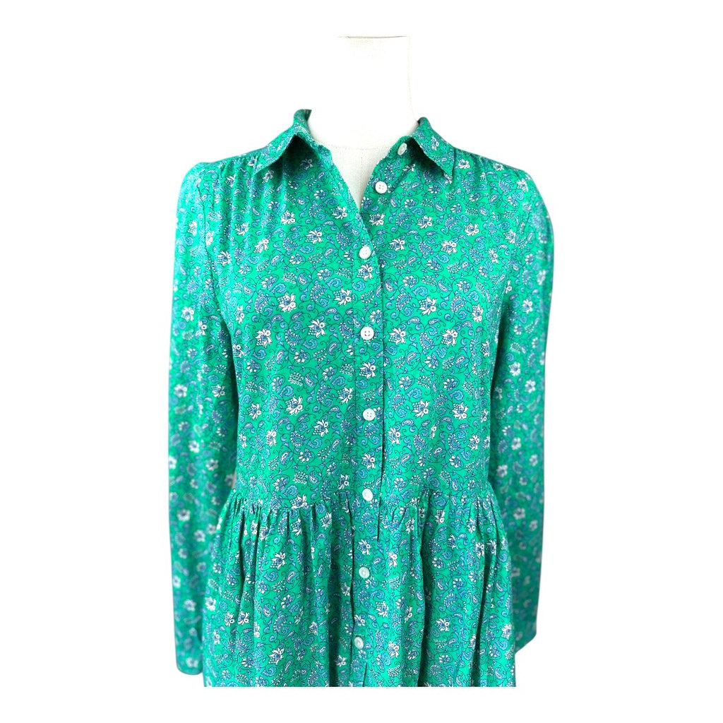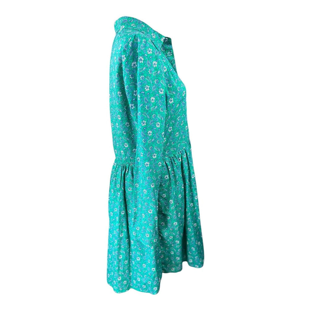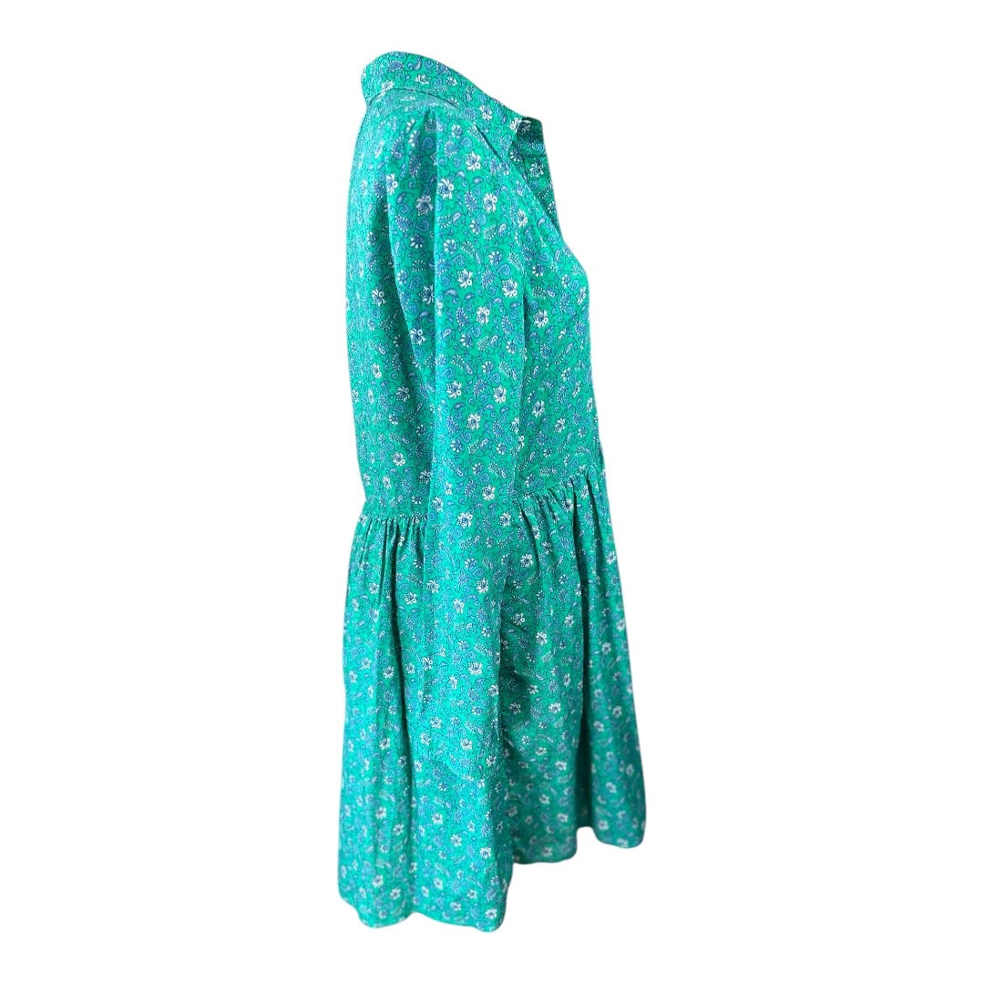 J. Crew Emerald Green Floral Cotton Preloved Mini Dress Size 6*