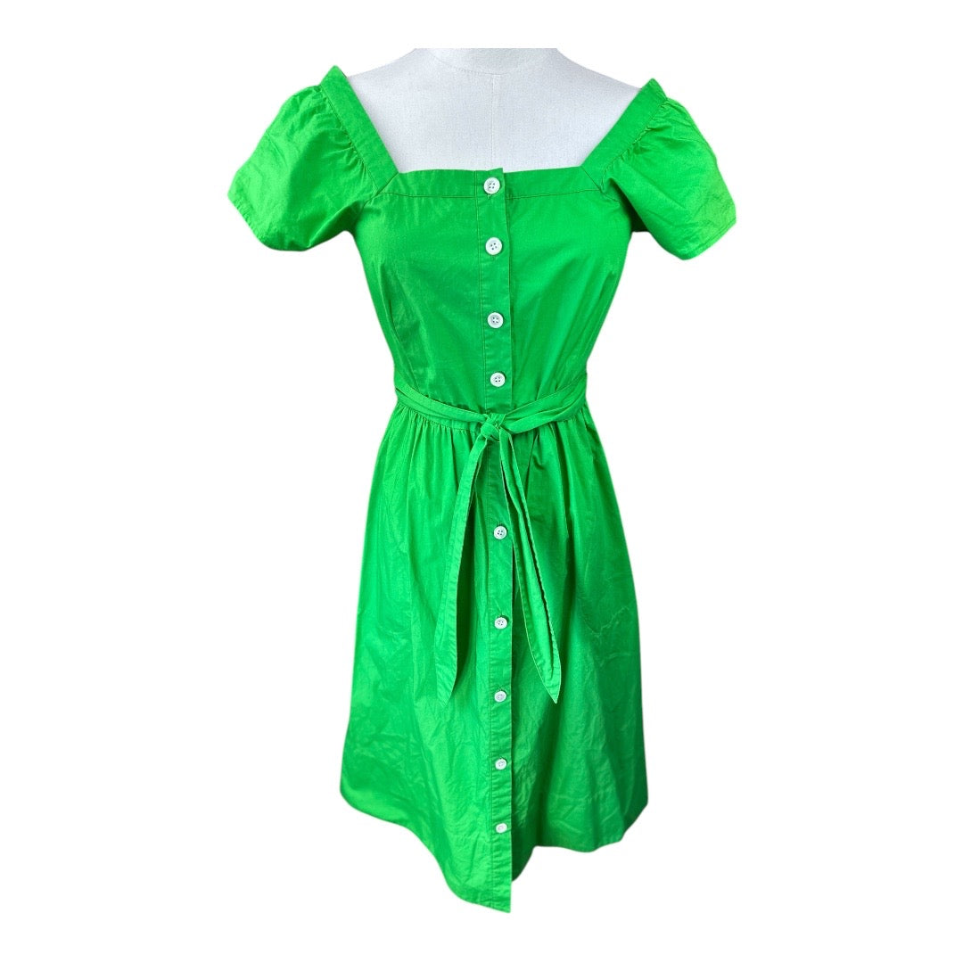 J. Crew Kelly Green Cotton Belted Preloved Shirt Dress Size O*