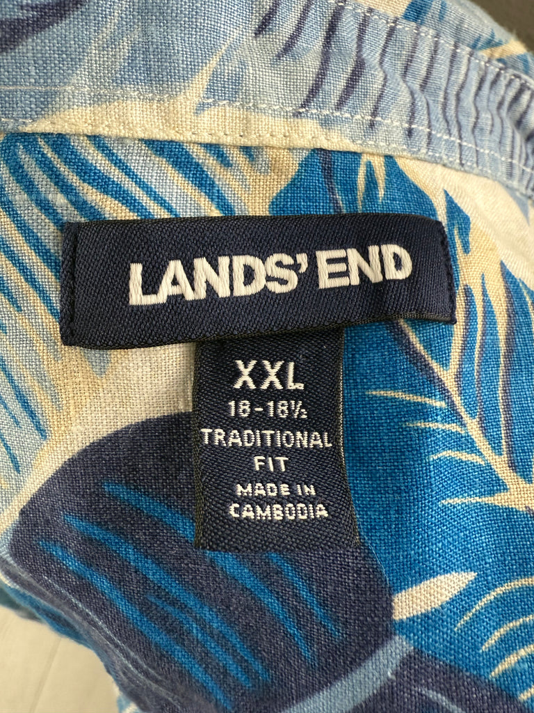 Land's End 100% Linen Hawaiian Short Sleeve Preloved Shirt Mens XXL*