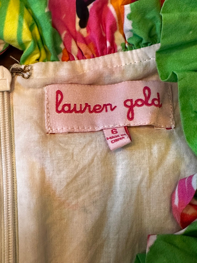 Lauren Gold 100% Cotton Pink & Green Flamingo Preloved Dress Size 6*